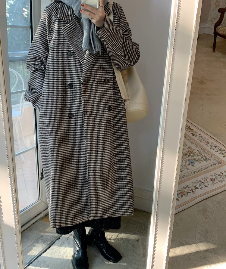コート オータムウィンタースタンダード格子柄ウェストスタイルロング レトロ 秋物 冬物 ICC_レディース70647994896