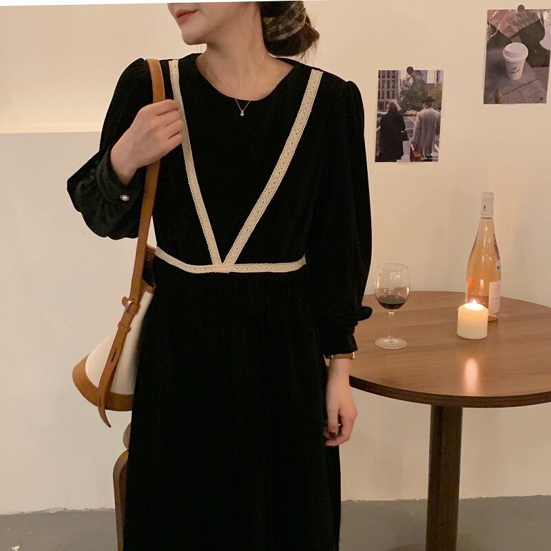 オータムラウンドネックベルベットドレス ルーズ薄手スカート ロング 秋物 Oネック ICC_レディース22087427381