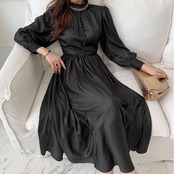 オータムウィンターブラックウェストスカート スリーブドレス レディース エレガント 秋物 冬物 ICC_レディース29303492766