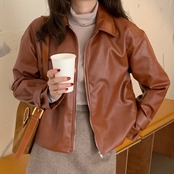 ショートレザージャケット レディースルーズトップス ウィンター 冬物 ICC_レディース68989176654