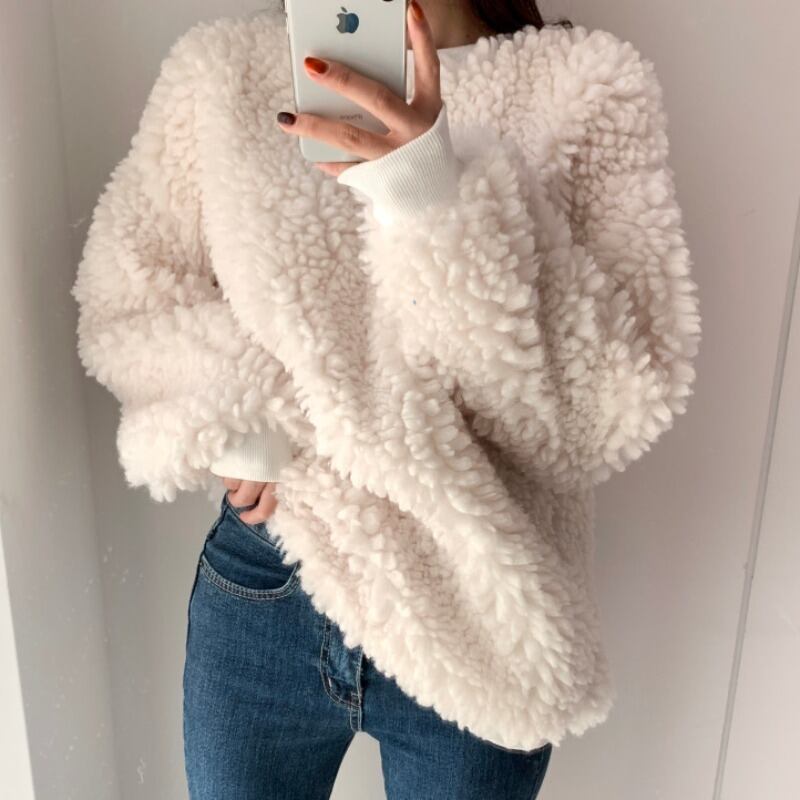オータムウィンターカジュアルラウンドネックプルオーバー ウールセーター ジャケット ランタンスリーブ 秋物 冬物 Oネック ICC_レディース33800292992