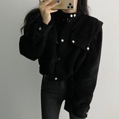 スタイルカラーショートジャケット レディースオータムレッドルーズコーデュロイ 秋物 ICC_レディース94199388267