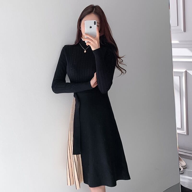 ニットドレス オータムスリムプリーツスカート ロング 秋物 ICC_レディース56160558923