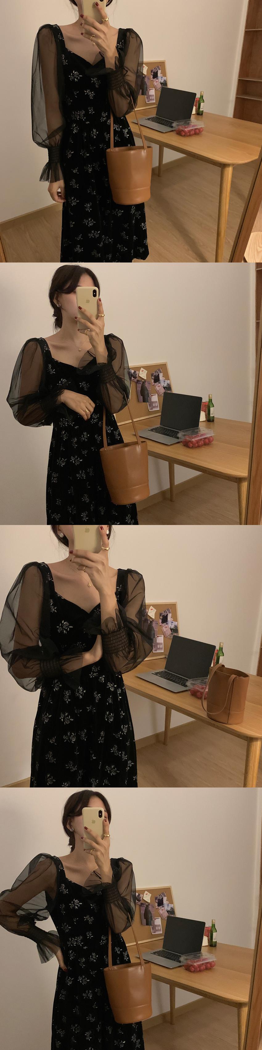 スタンダードVネックフローラルメッシュスリーブドレス ブラック レトロ エレガント 花柄 ステッチ ICC_レディース64204921892