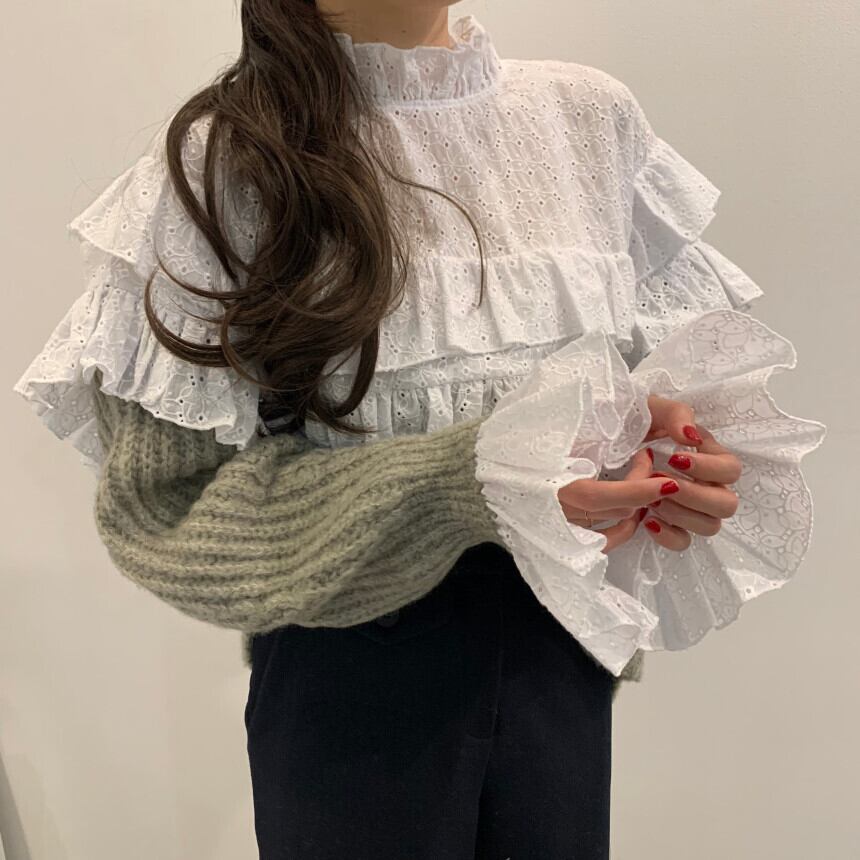 オータムウィンタースタンダードシャツ セーター トップス レディース ロング レトロ 秋物 冬物 ステッチ ICC_レディース2074054055