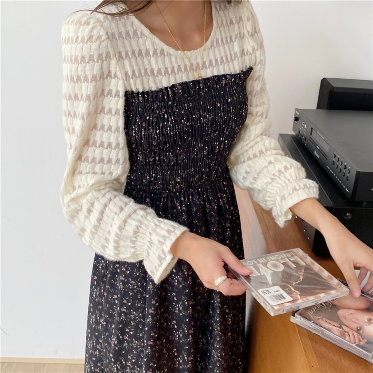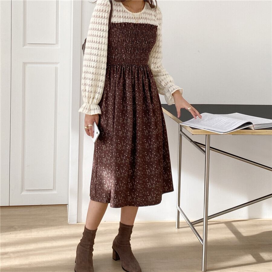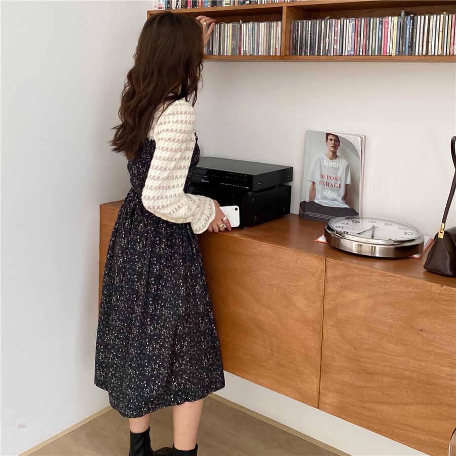 スカート オータムウィンターレースウェストフローラルドレス レディース 秋物 冬物 花柄 ステッチ ICC_レディース84890596624