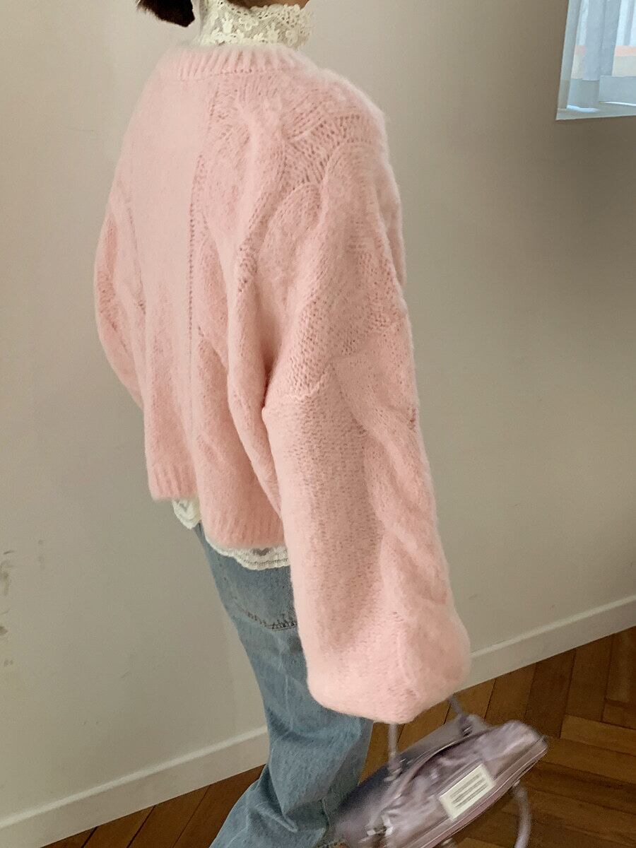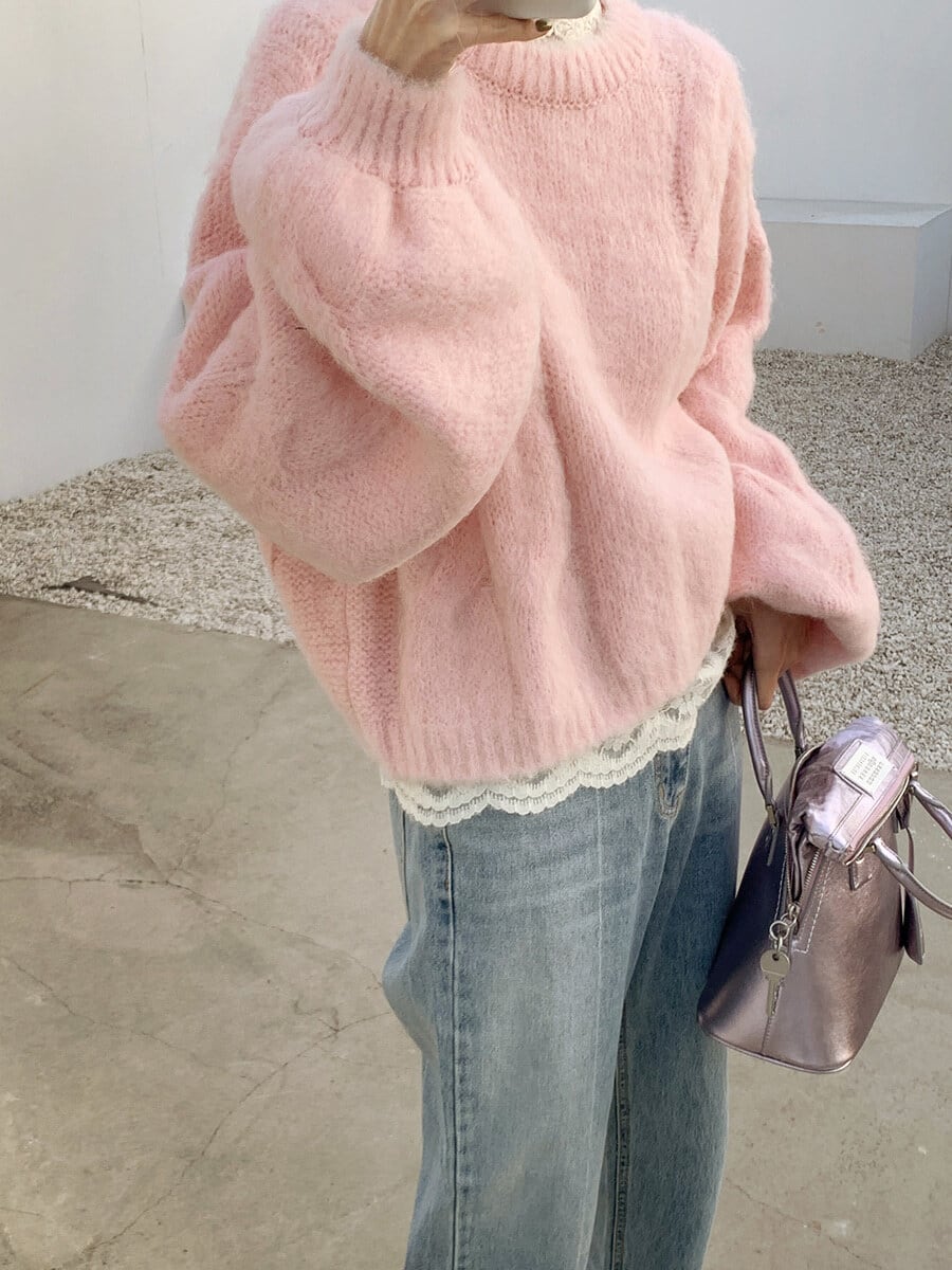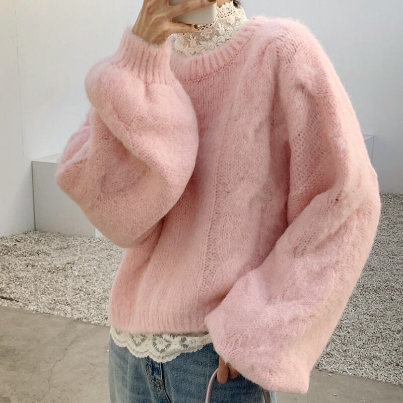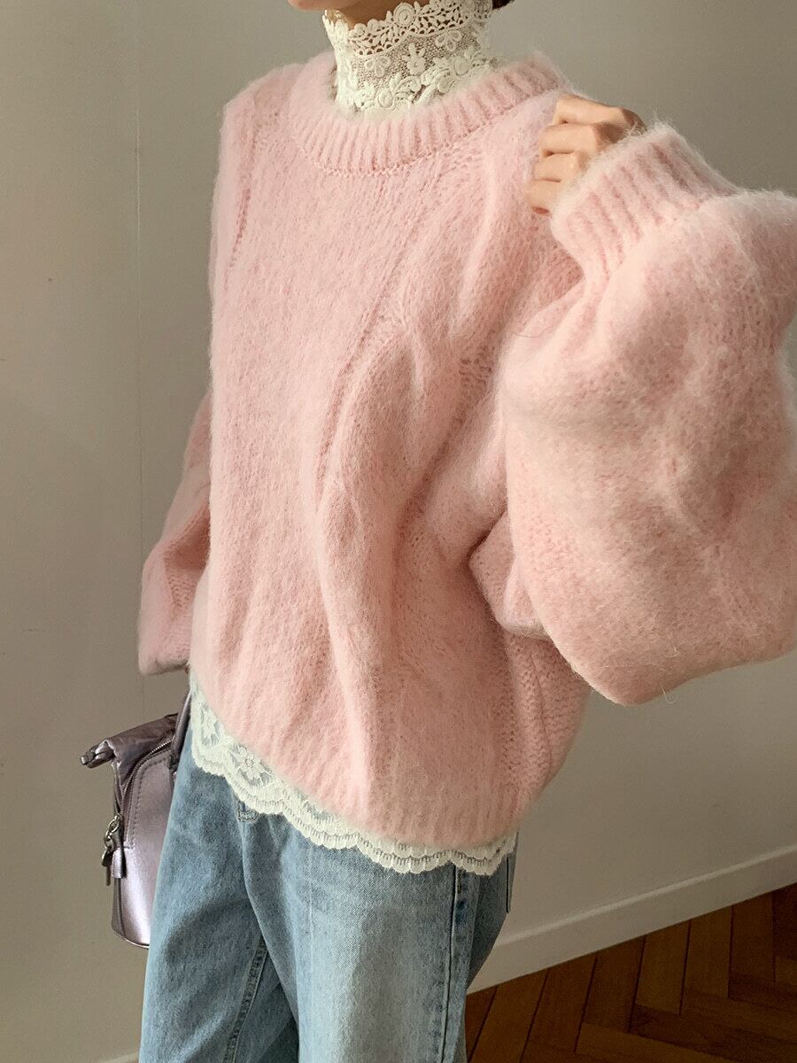レースシャツ パターンセーター レディース ロング ピンク エレガント ICC_レディース31481148305
