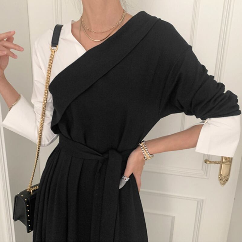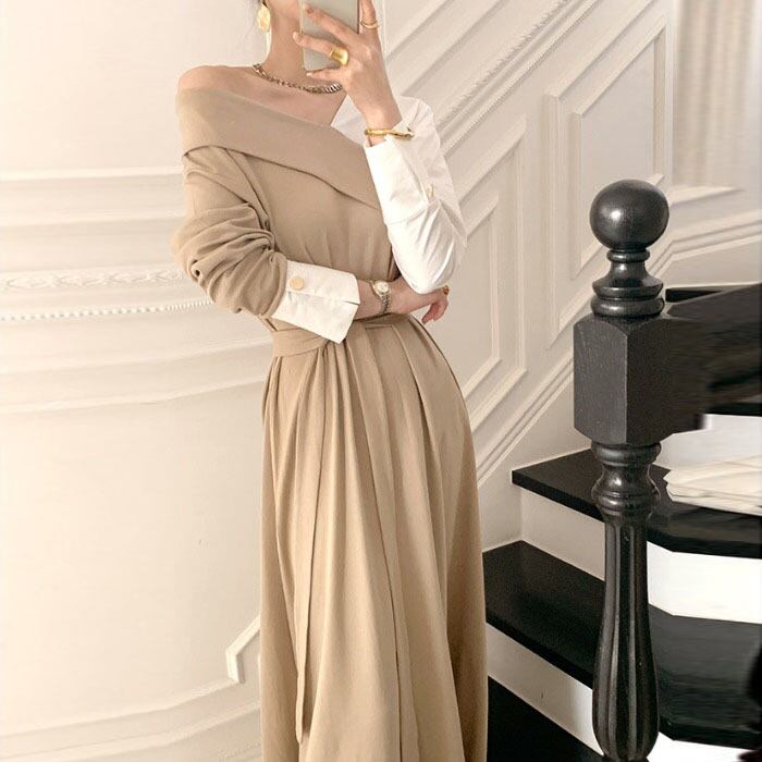 スカート オータムウィンターカラーレーススリムドレス レディース ロング 秋物 冬物 ステッチ ICC_レディース50277954779