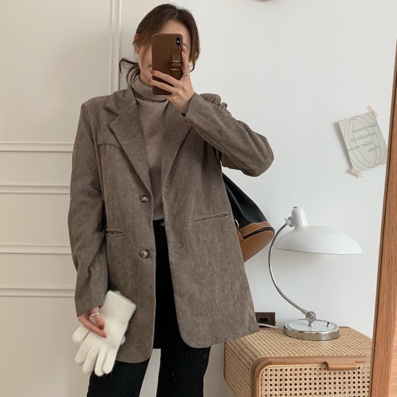 スプリングオータムルーズカジュアルスタイルコーデュロイジャケット レディース ストリート 春物 秋物 ICC_レディース76047024678
