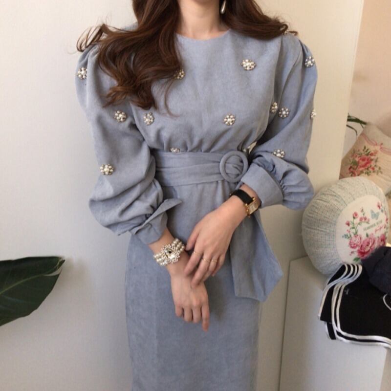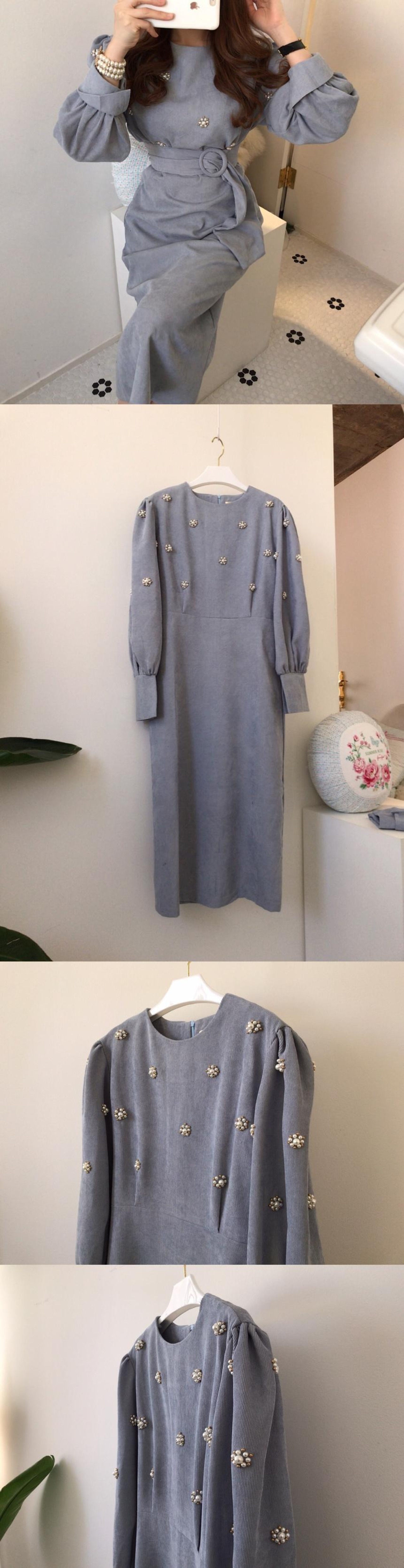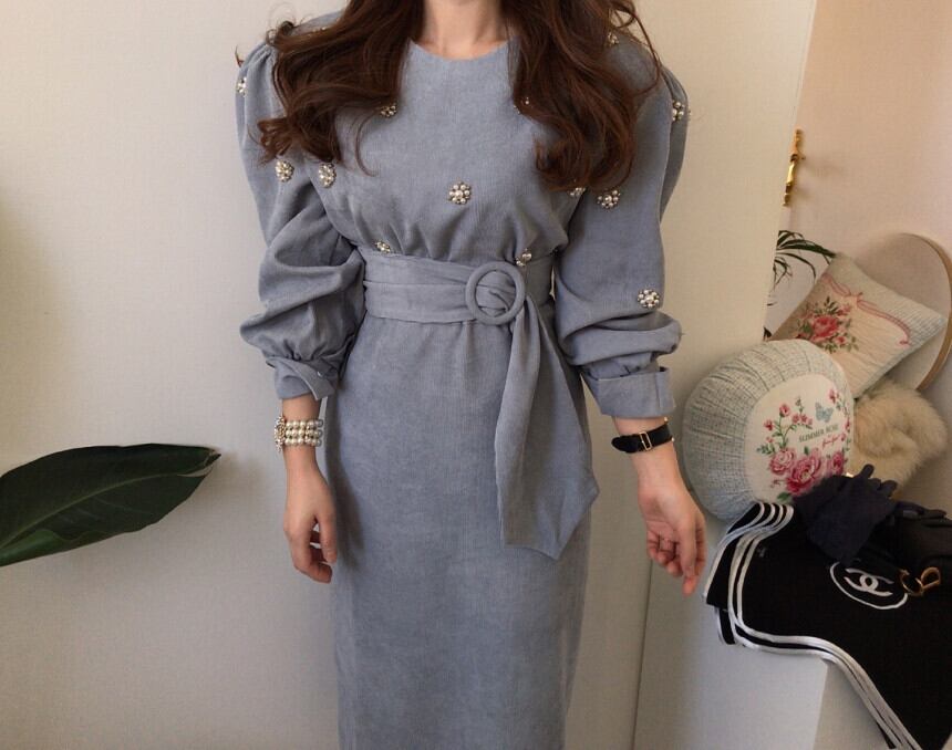 オータムウィンターFlowerデザイン ベルト コーデュロイドレス エレガント 秋物 冬物 ハーネス フラワーデザイン ICC_レディース58771388070