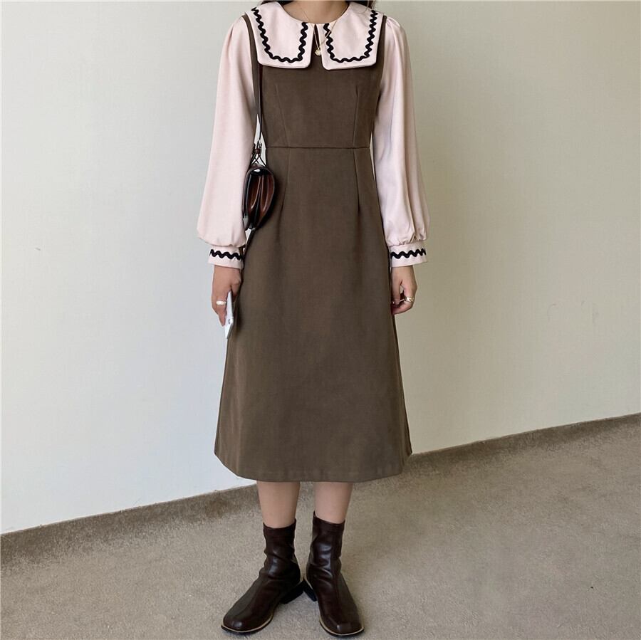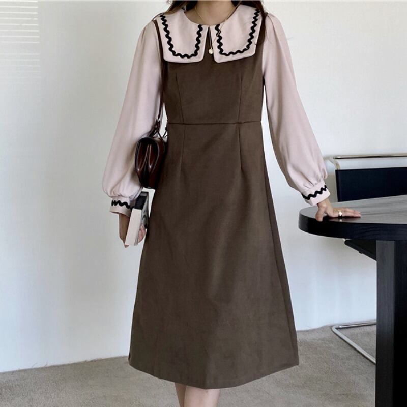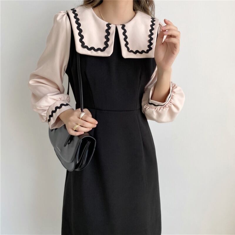 スタンダードカラーウェストスリーブドレス レトロ ステッチ ICC_レディース40760064265