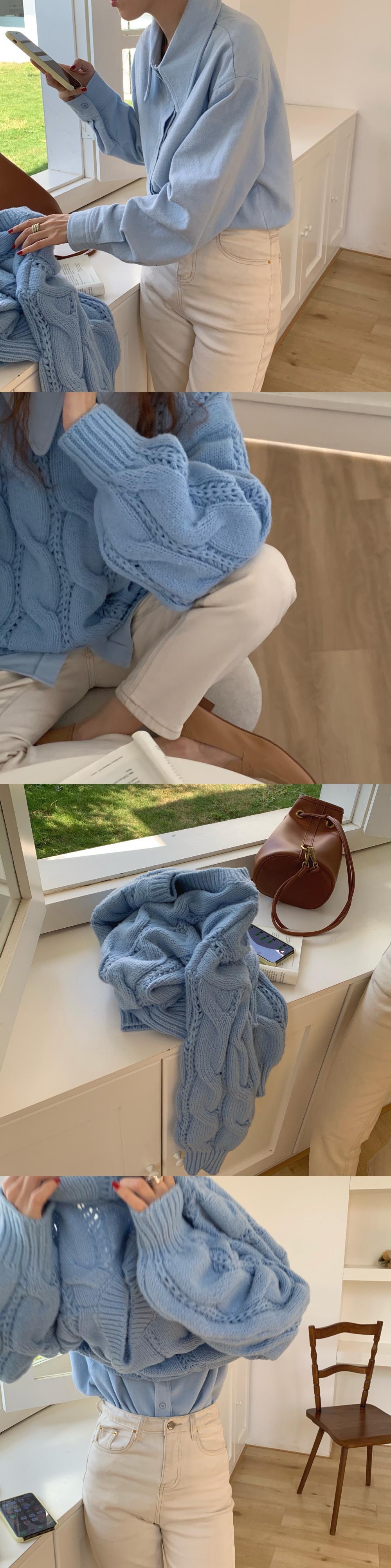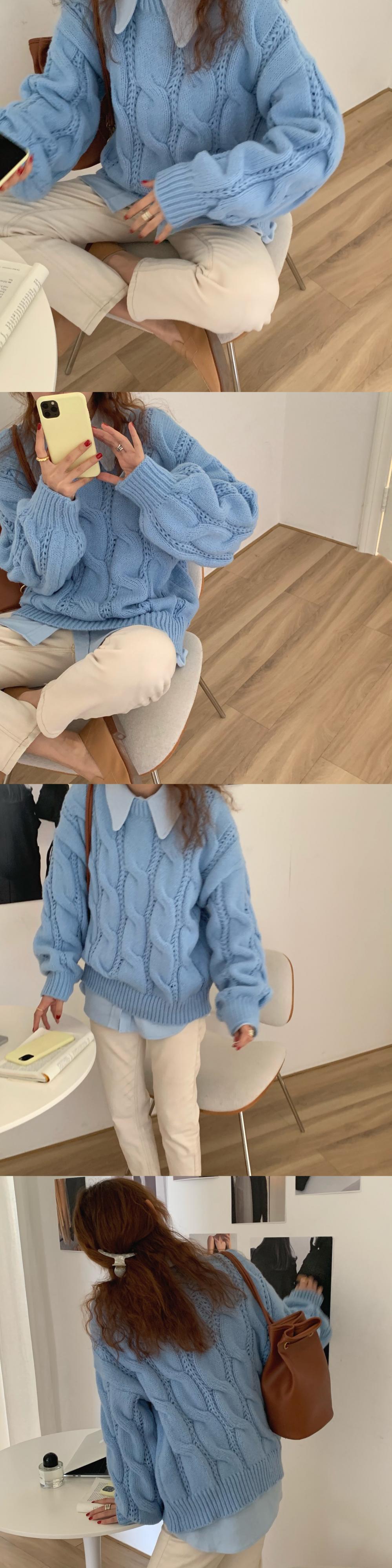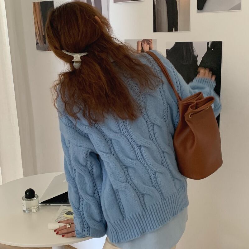 セーター ルーズネイビーブルーレッドトップス オータムウィンター 秋物 冬物 ICC_レディース36510818068