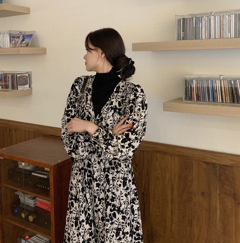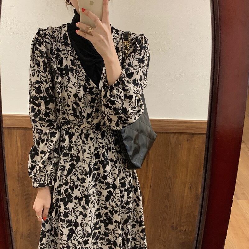 オータムウィンターカラーウェストロングAラインフローラルドレス 秋物 冬物 花柄 ICC_レディース23127188762