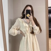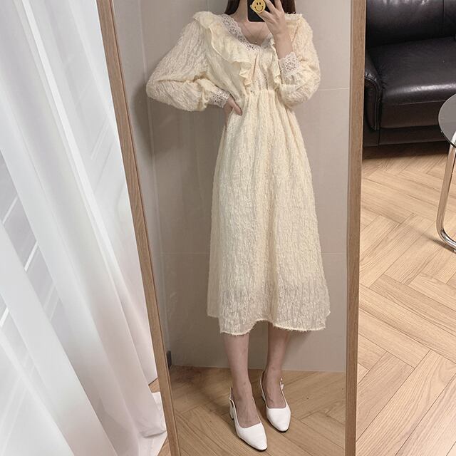 ブラックドレス オータムウィンタースタイルスタンダードVネックレースウェストコート ロングスカート レトロ 秋物 冬物 ICC_レディース9808375456