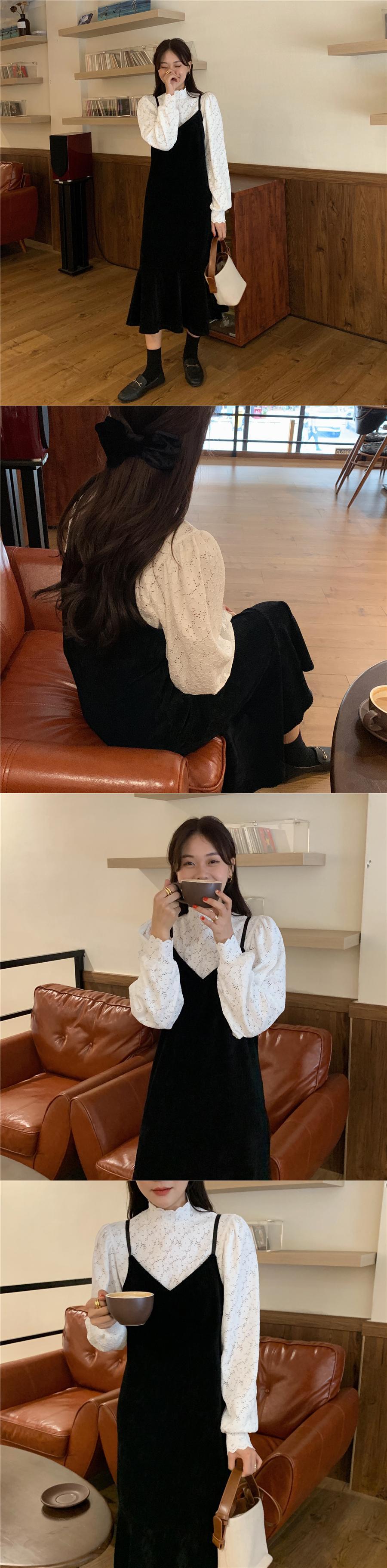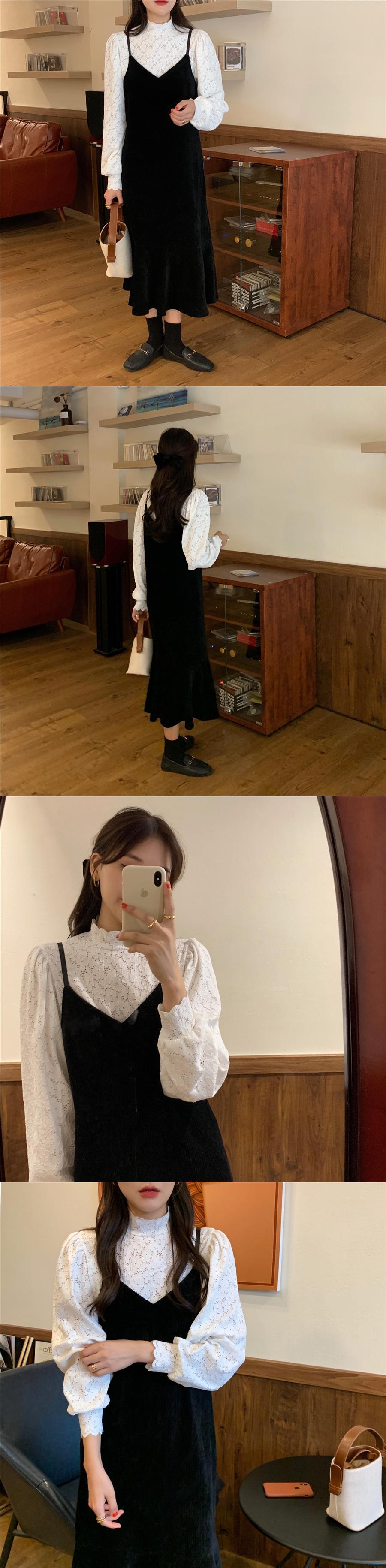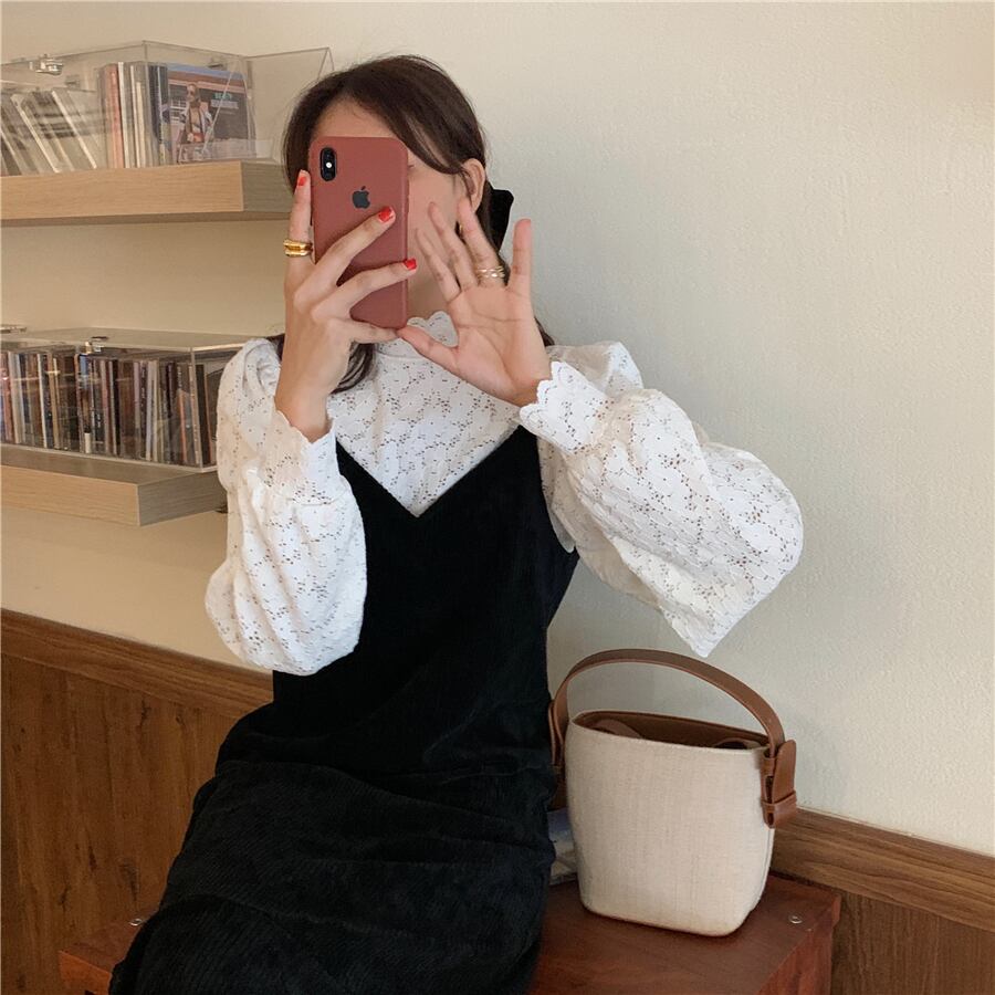 色:レースボトムスシャツ,ブラックサスペンダースカート