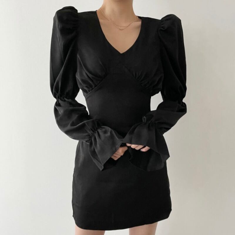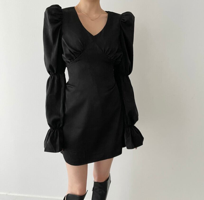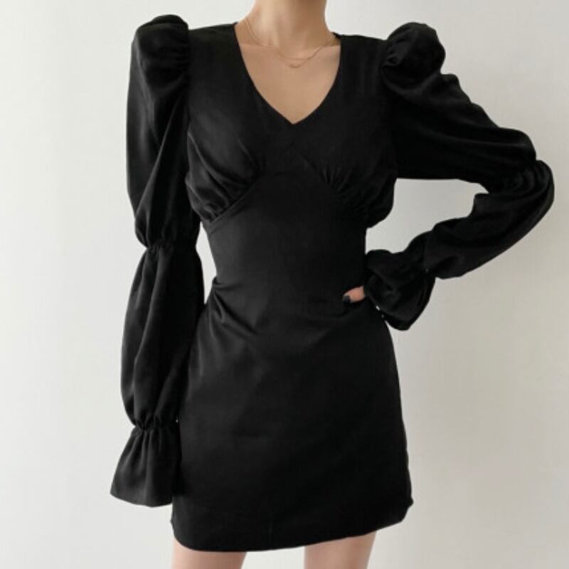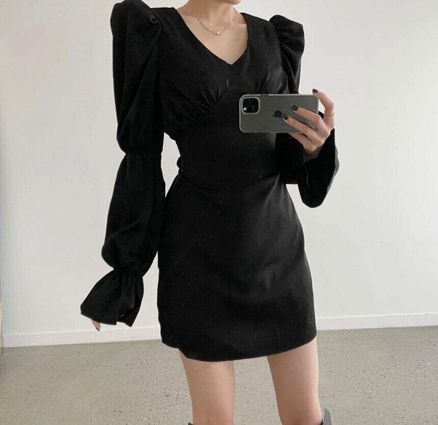 オータムウィンタースタンダードVネック薄手ウェストドレス レディース レトロ 秋物 冬物 ICC_レディース60894904511