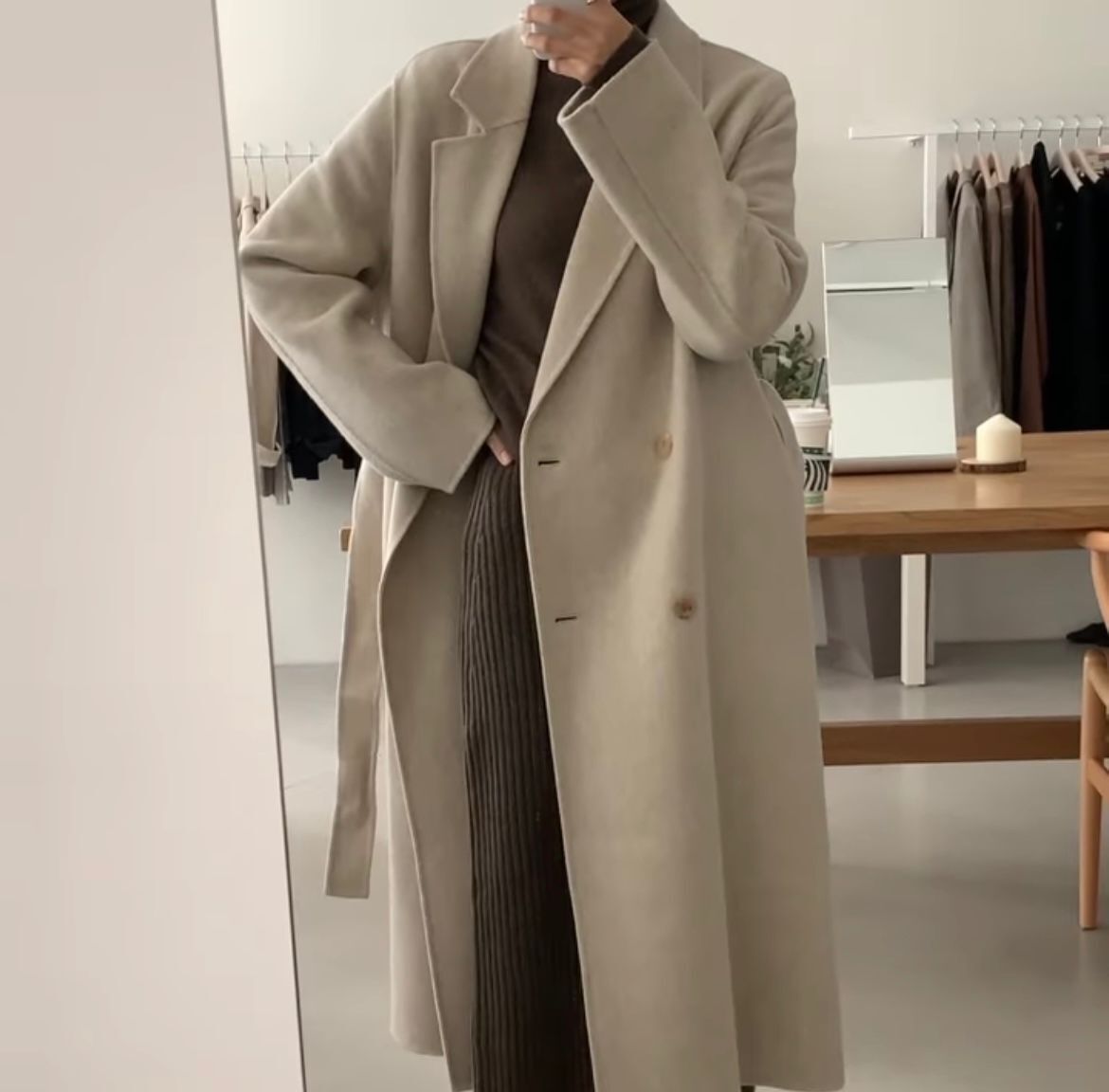 オータムウィンターカラーダブルブレストカジュアルルーズロングコート 秋物 冬物 ICC_レディース6107342423