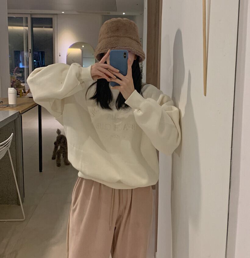 パターンルーズラウンドネックベルベットスウェット レッド 刺繍 Oネック ICC_レディース86444588333