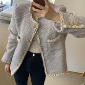 オータムスタンダードルーズカジュアルツィードショートコート 長袖スリーブトップス レディース ロング レトロ 秋物 ICC_レディース55080964111