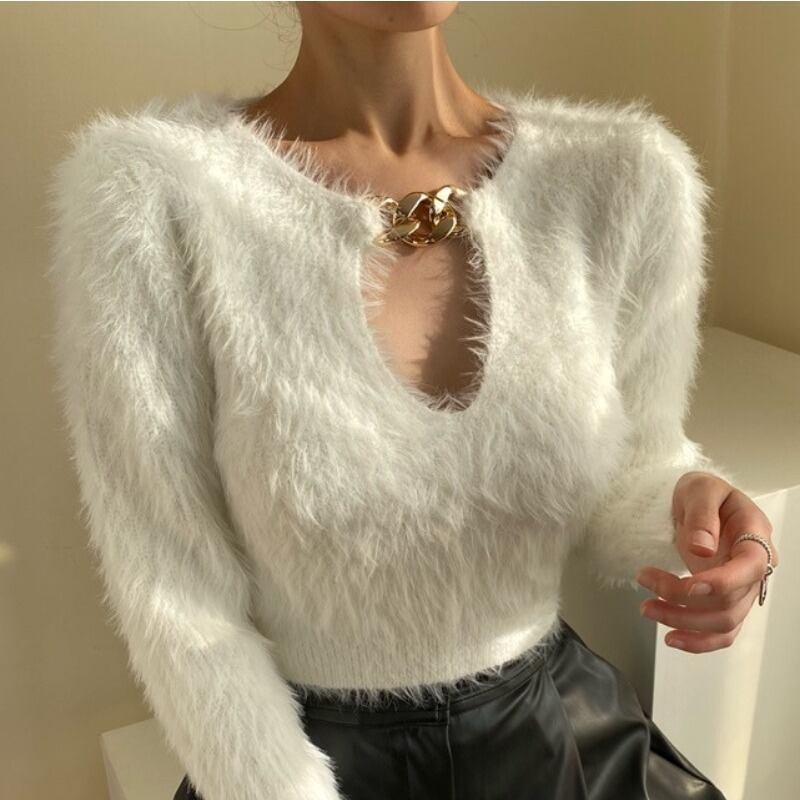 セーター レディースルーズオータムウィンターラウンドネックチェーン ファー 秋物 冬物 Oネック ICC_レディース87132934790