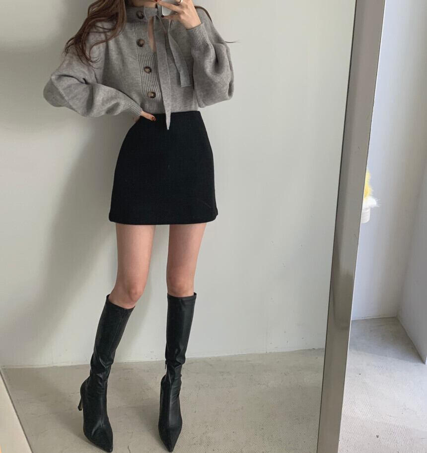 オータムウィンター薄手Vネックセーター スカート レディース ロング 秋物 冬物 ICC_レディース80519471698