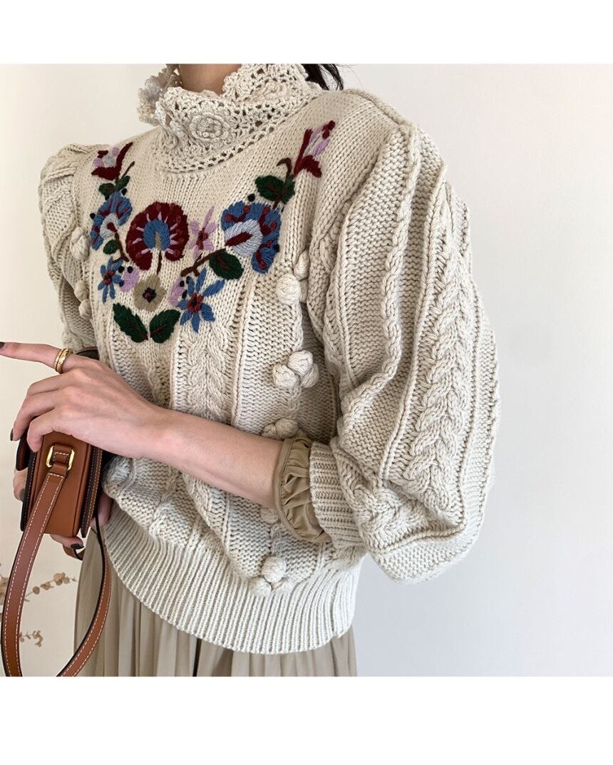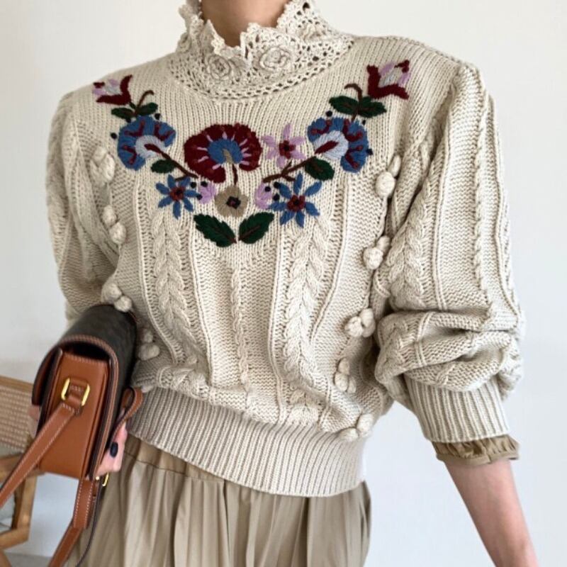 オータムウィンター刺繍プルオーバー セーター ニットレディース 秋物 冬物 ICC_レディース2611709740