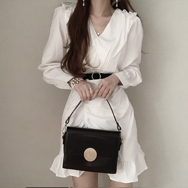 Vネックホワイトドレス ベルト 大人ガーリー スウィート キュート カジュアル ハーネス ICC_レディース39034686918