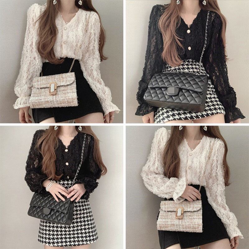 パールボタンVネックレーストップス 真珠 ICC_レディース38781324382