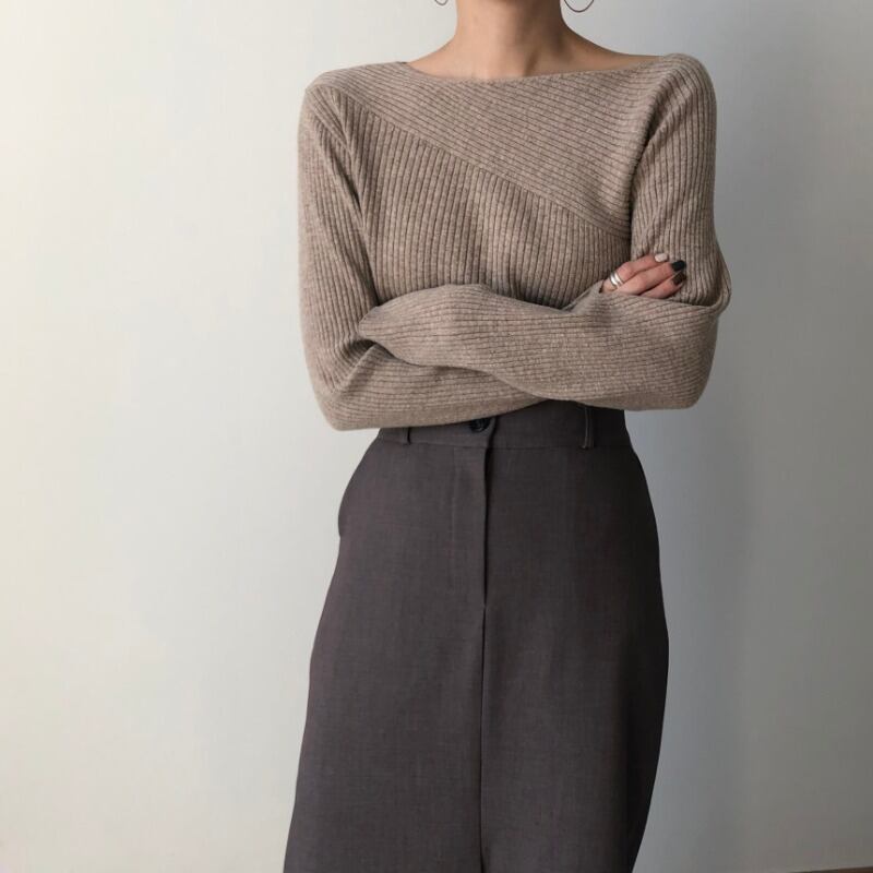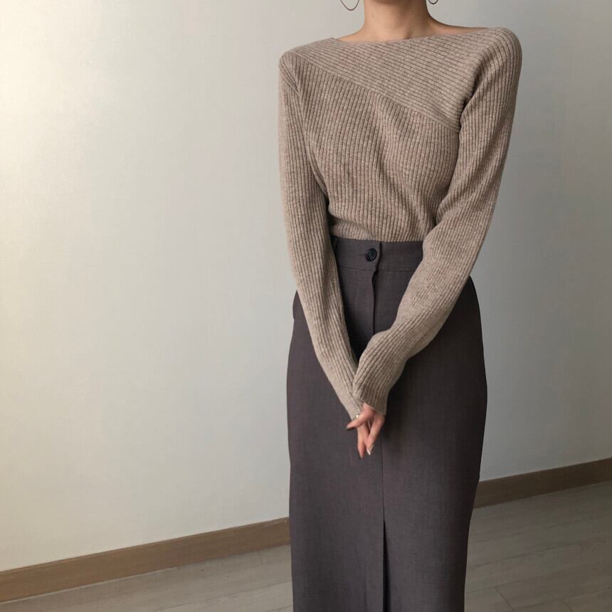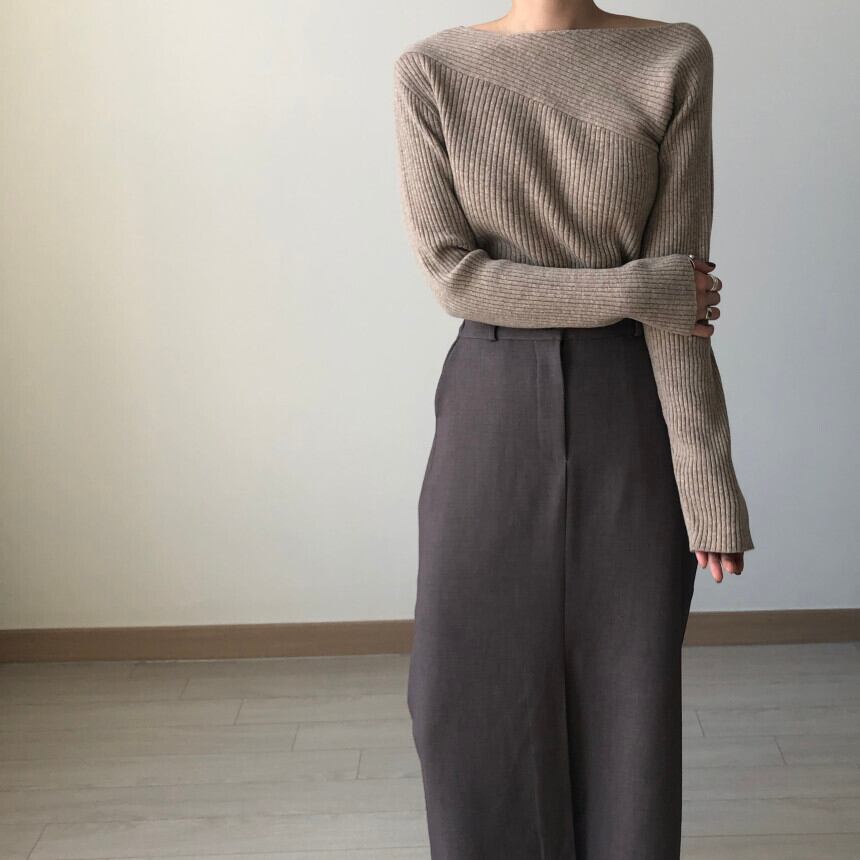 オータムウィンターロングプルオーバー ニットセーター ハイウェストスリットスカート レディース 秋物 冬物 ICC_レディース60705754195