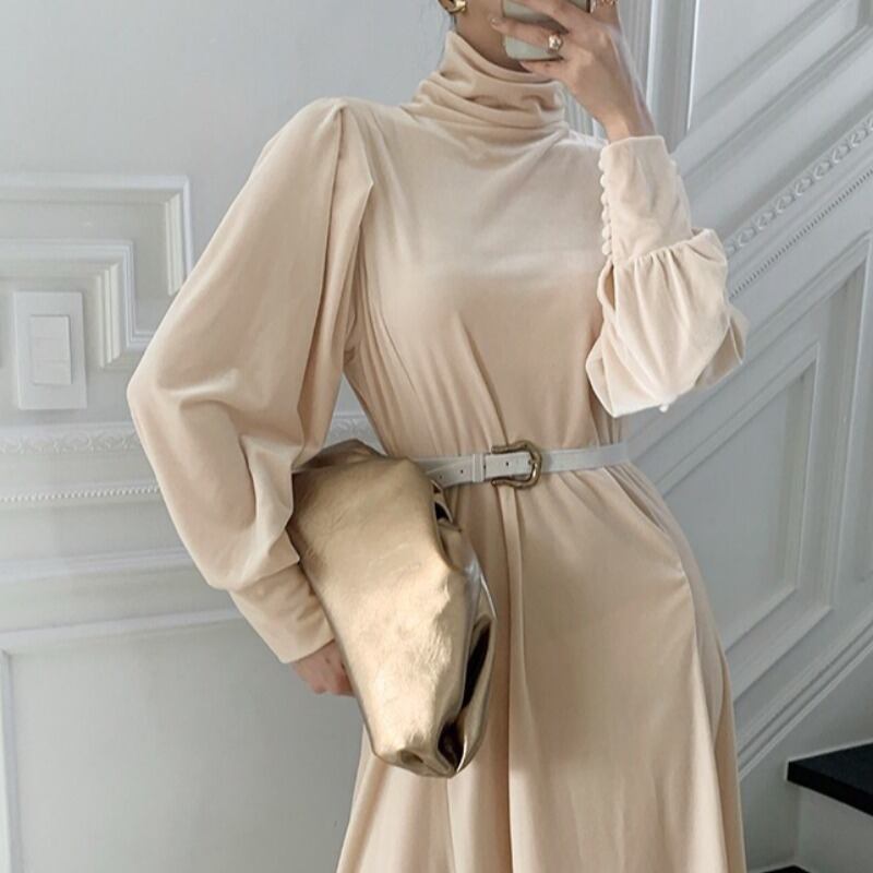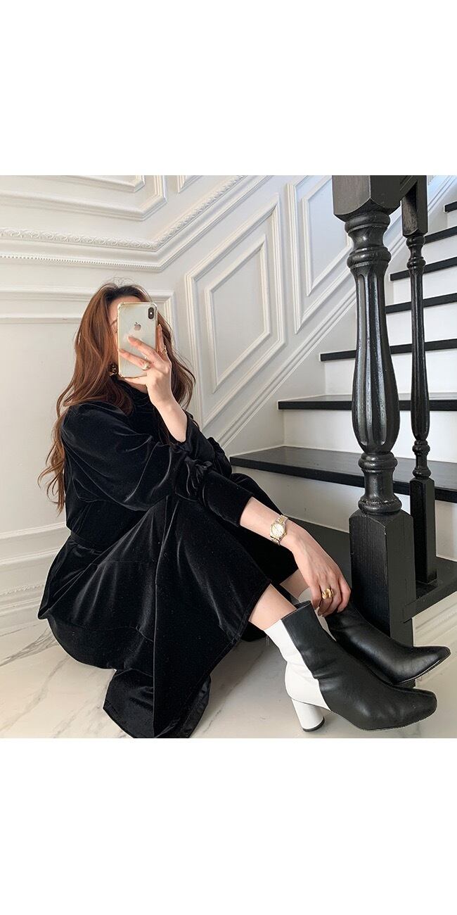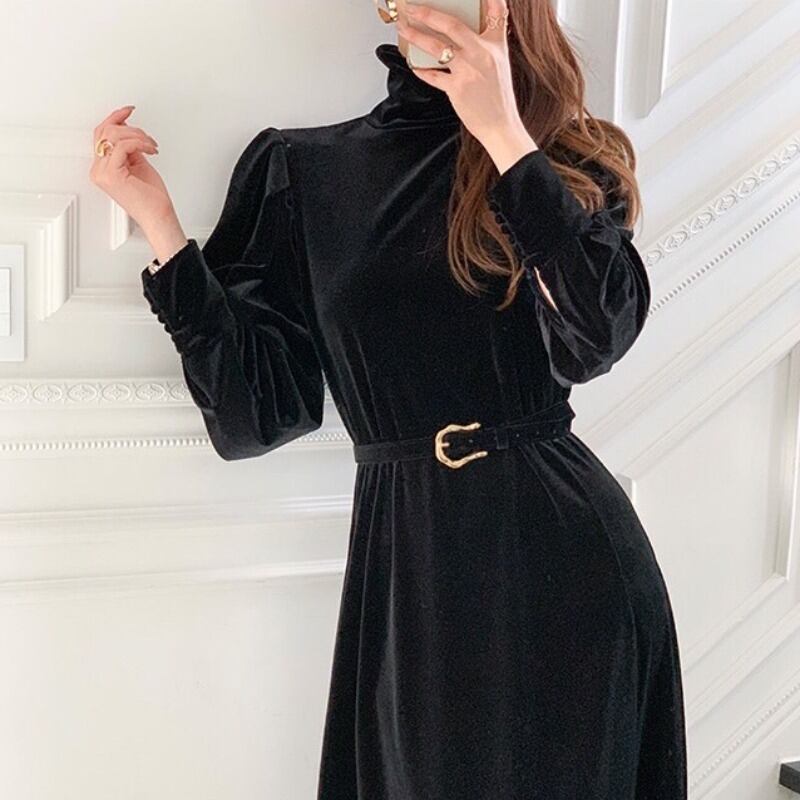 ルーズロングスリーブベルベットドレス ベルト ランタンスリーブ エレガント ハーネス ICC_レディース1342939838