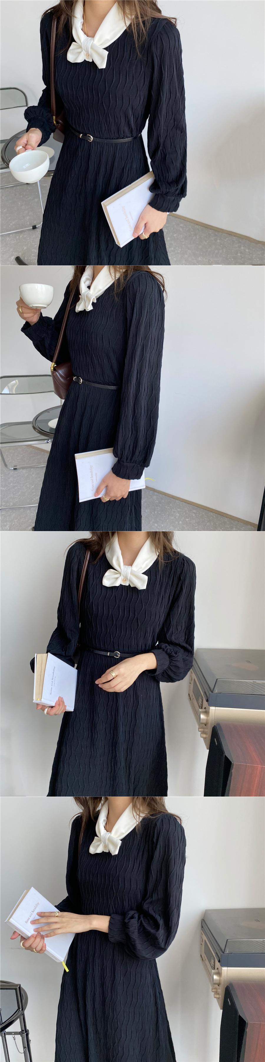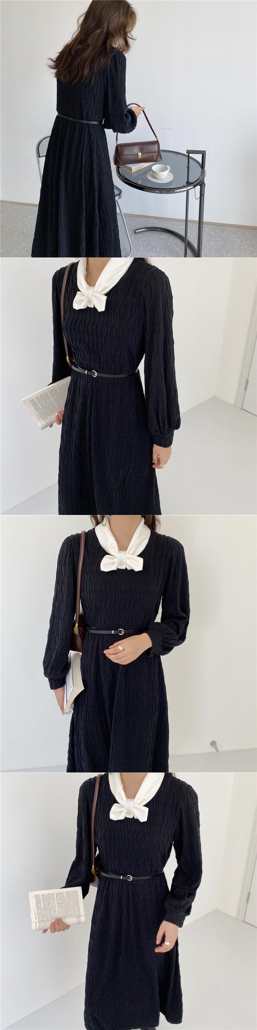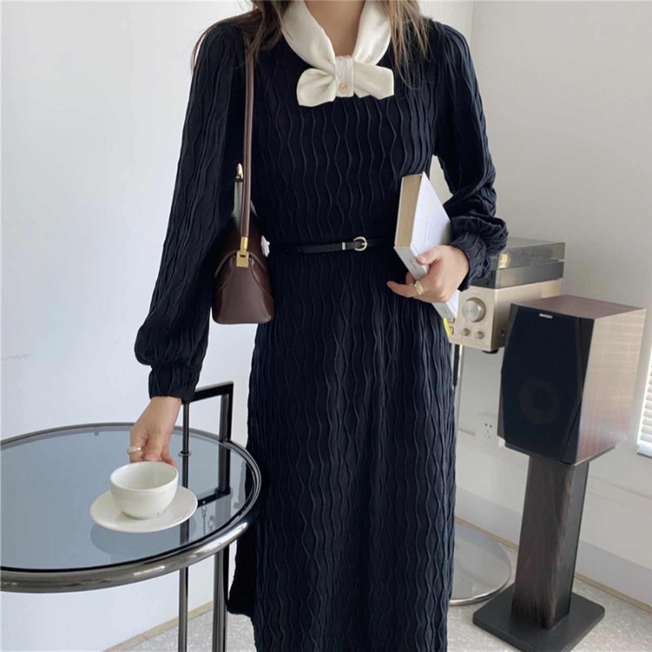 スタンダードリボンプルオーバー ドレス ルーズオータムウィンターウェストスカート レトロ 秋物 冬物 フラワーデザイン ICC_レディース65287140974