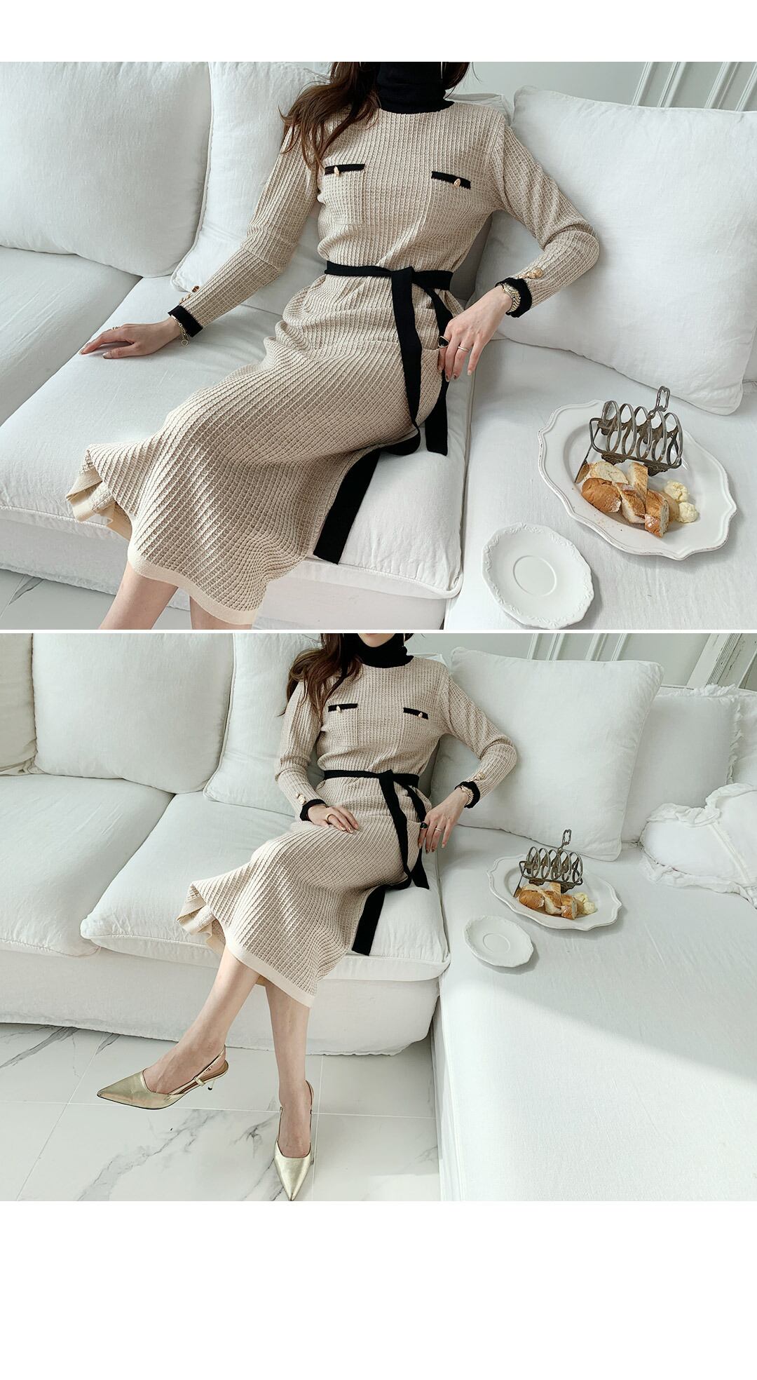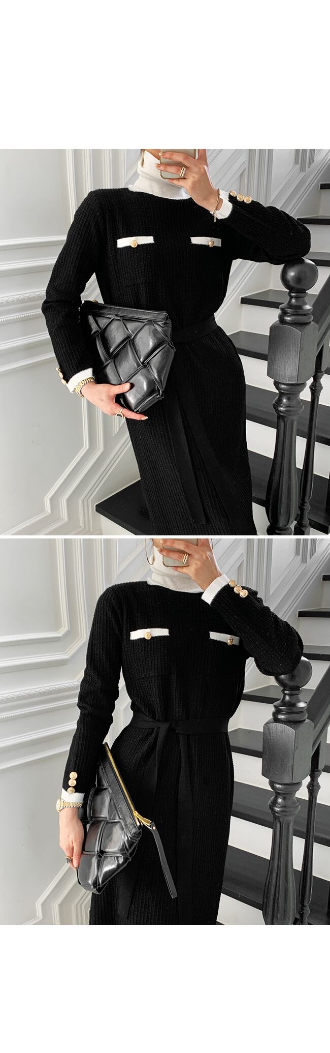 オータムウィンターカラーボタンニットドレス レディース エレガント 秋物 冬物 ICC_レディース86968059061