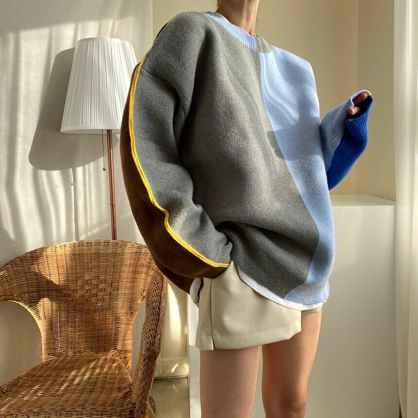 オータムウィンタールーズラウンドネックプルオーバー セーター ブラウス レディース ロング 秋物 冬物 Oネック ステッチ ICC_レディース64795972612