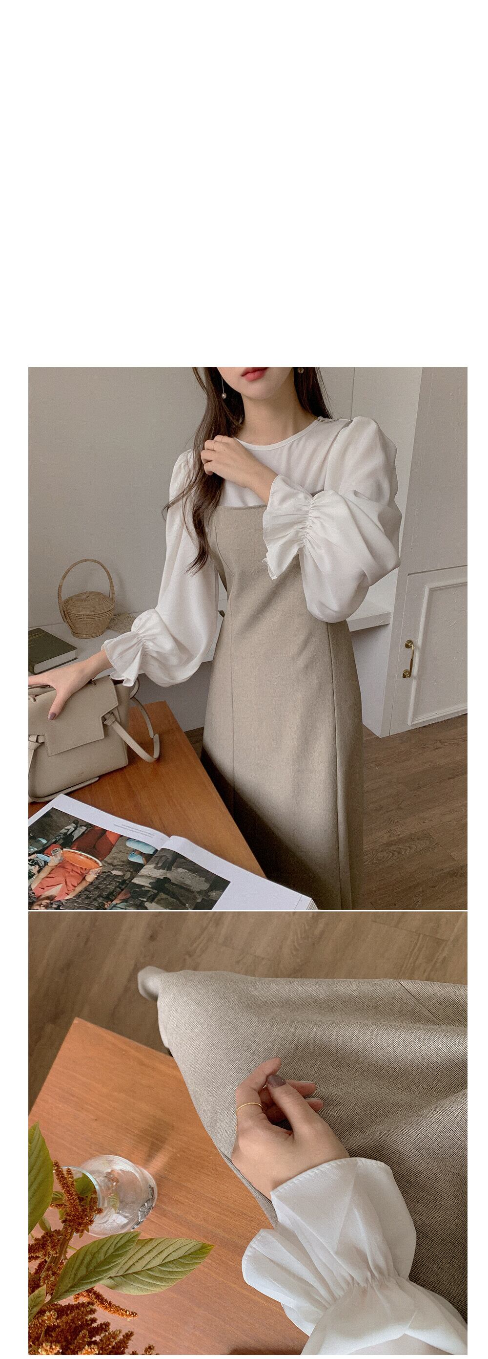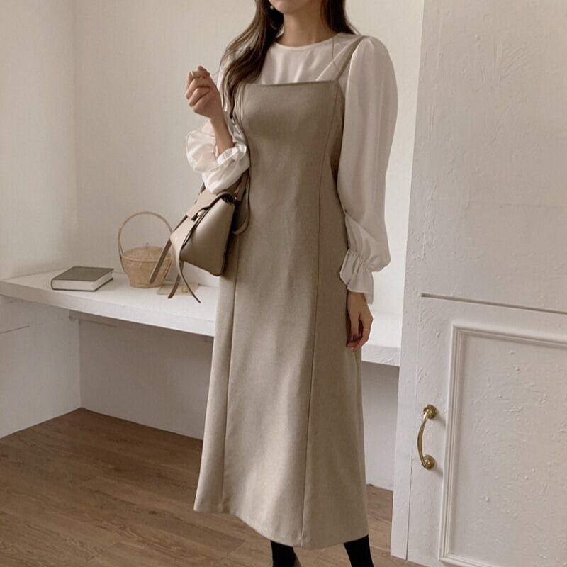 オータムラウンドネックシャツ ロングウェストドレス レッド レース 秋物 Oネック レースアップ ICC_レディース56831303345