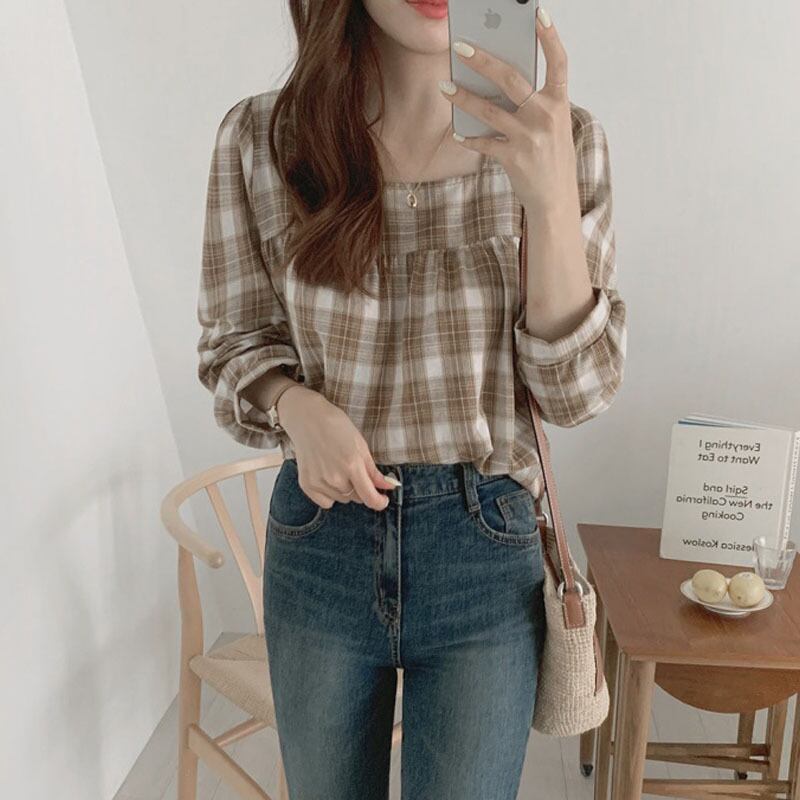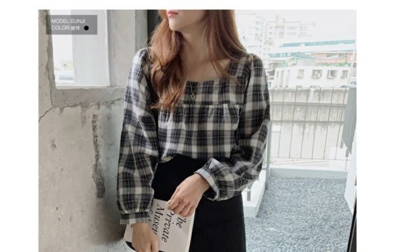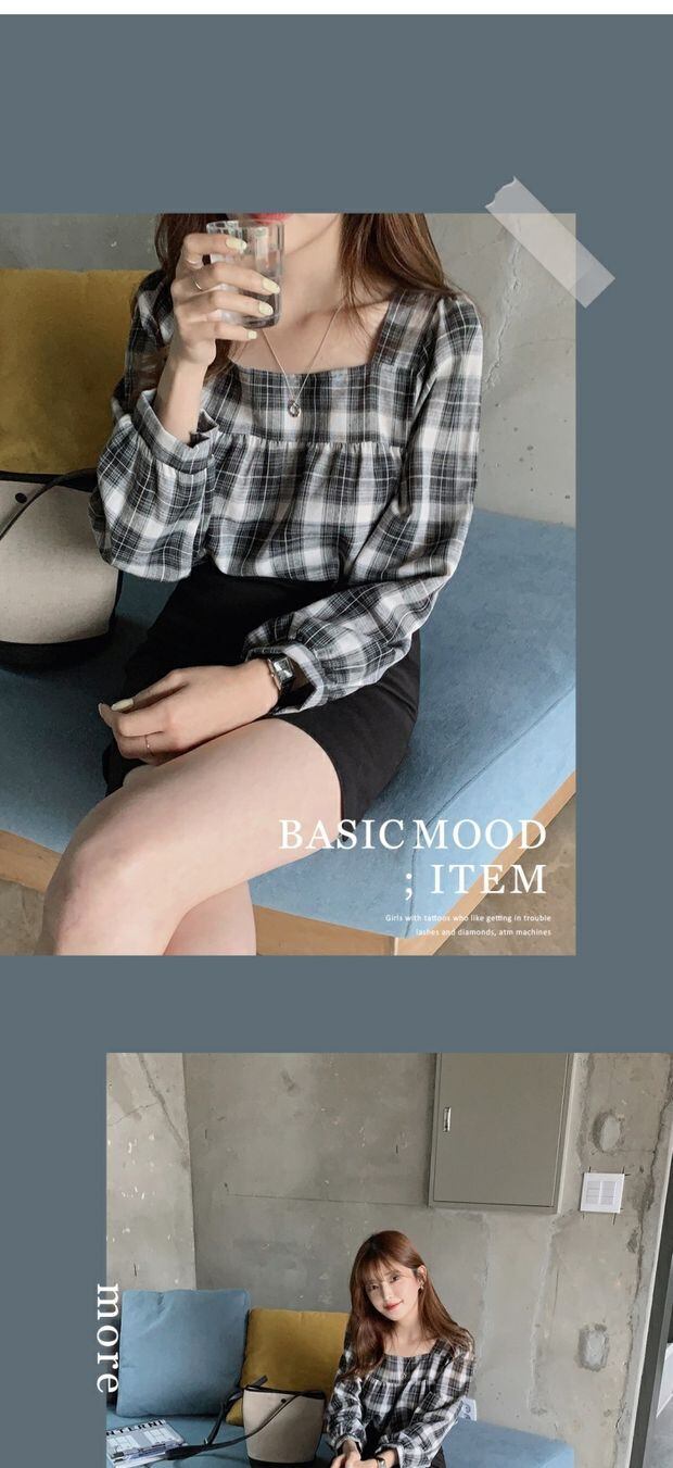 スプリングシャツ ルーズ格子柄 ロング コットン 春物 スクウェア 左左右右84698402078