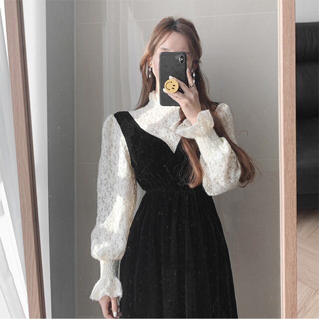 ヴィンテージレースベルベットドレス ビンテージ ステッチ ICC_レディース31310887992