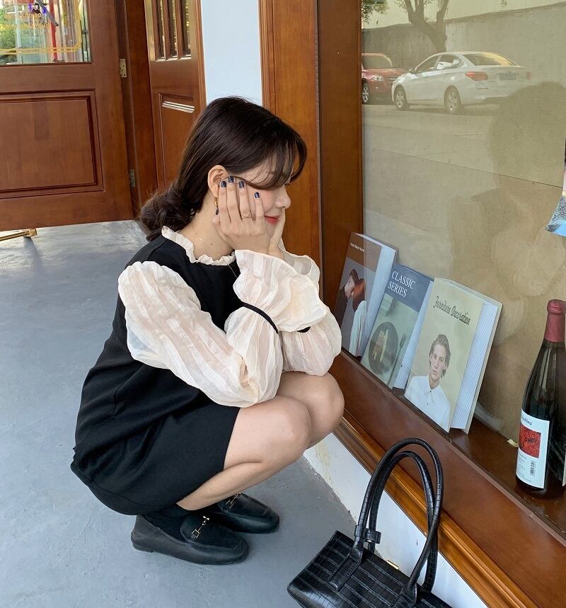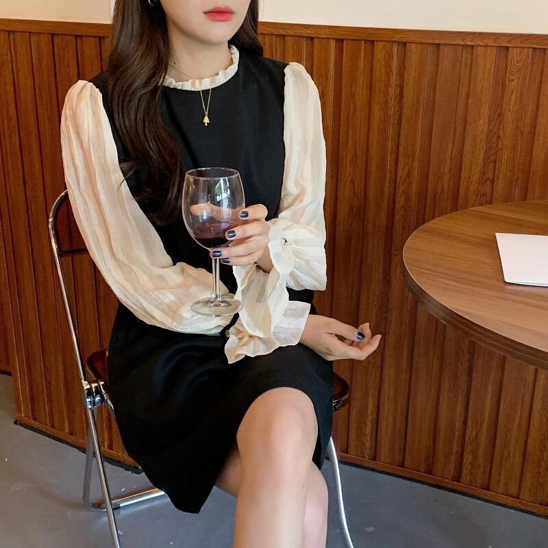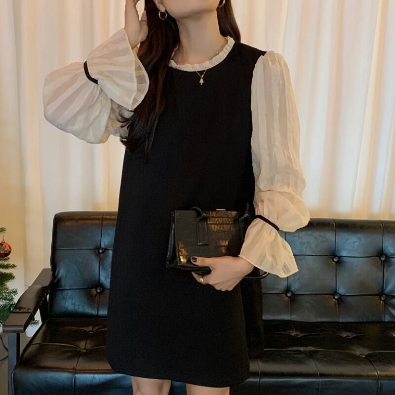 スタンダードスタンドカラーカラールーズスリムドレス ワンピース レトロ 大人ガーリー スウィート キュート カジュアル ステッチ ICC_レディース76894851847