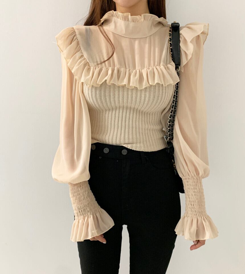 シフォンニットセーター カラーシャツ エレガント ステッチ ICC_レディース13394263739