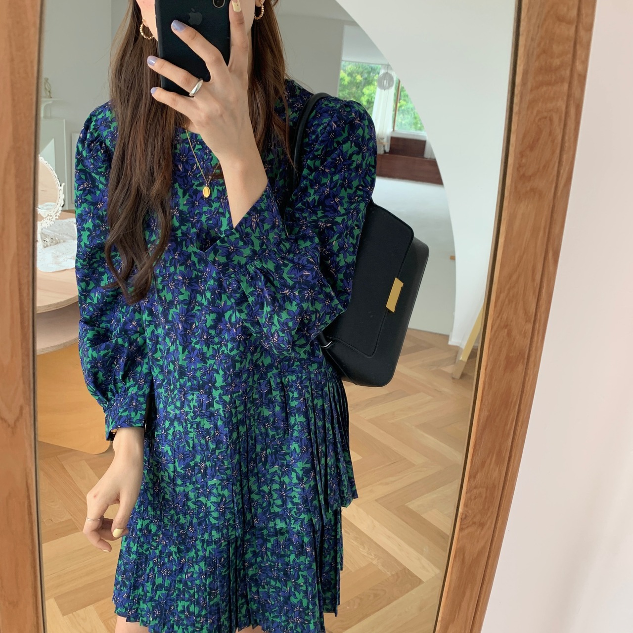 フローラル薄手プリーツドレス 大人ガーリー スウィート キュート カジュアル 花柄 ICC_レディース27517228816