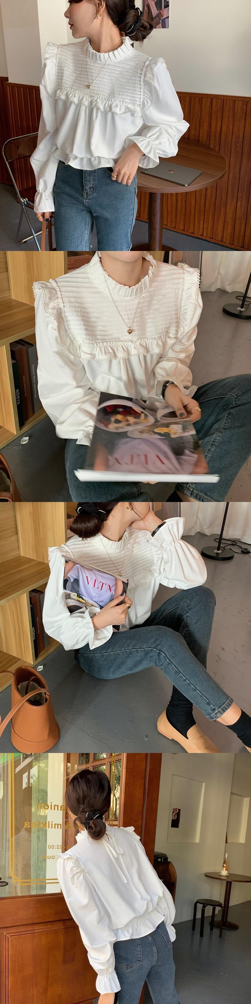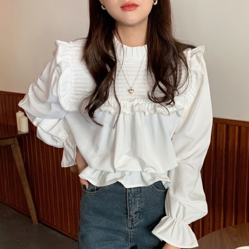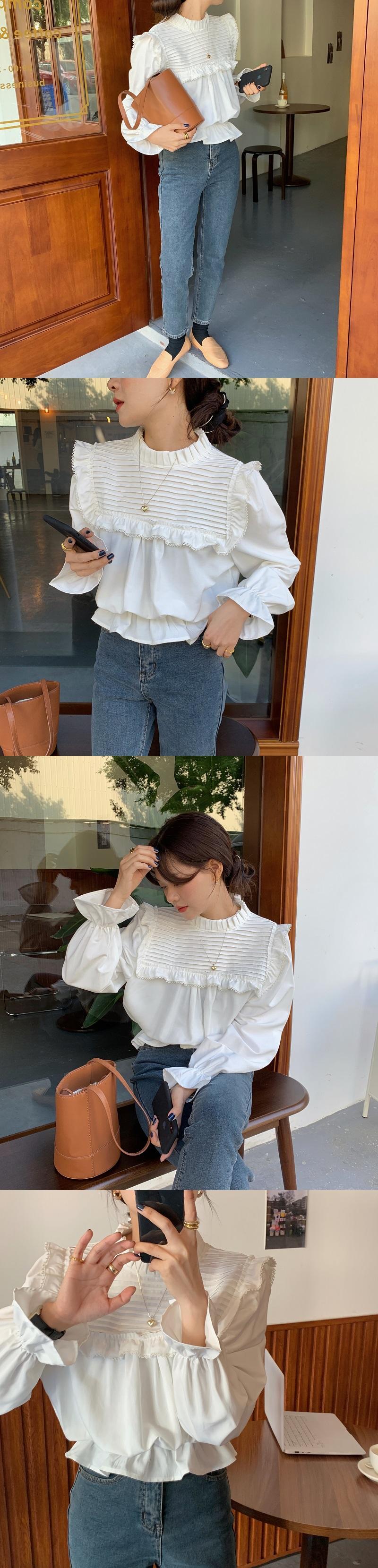 スタンダードプリーツカラーバック長袖スリーブシャツ ロング レトロ 大人ガーリー スウィート キュート カジュアル ステッチ ICC_レディース87450956440
