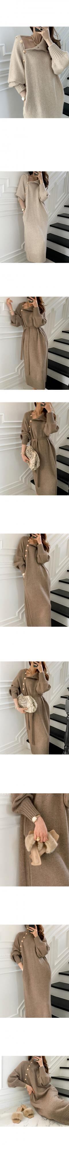 オータムウィンタースタンダードボタンセーター ドレス レースウェストニットレディース レトロ 秋物 冬物 ICC_レディース74060575769