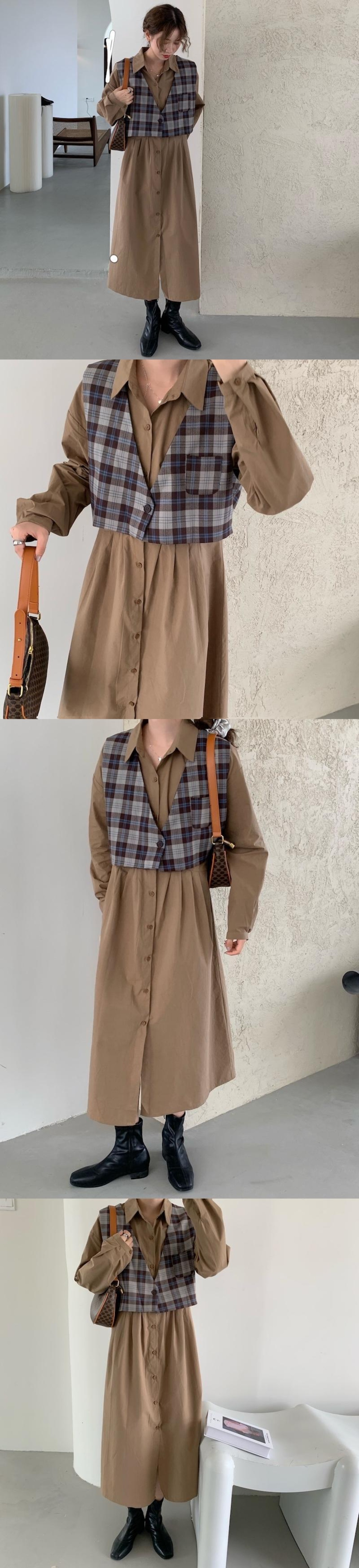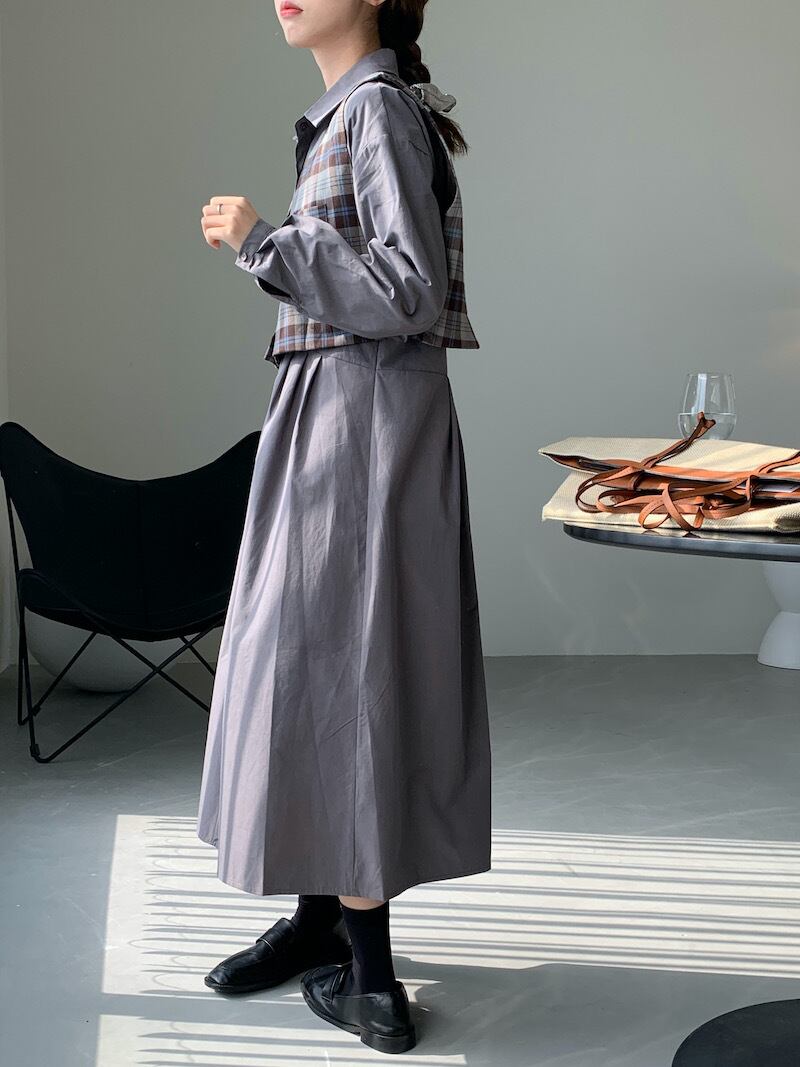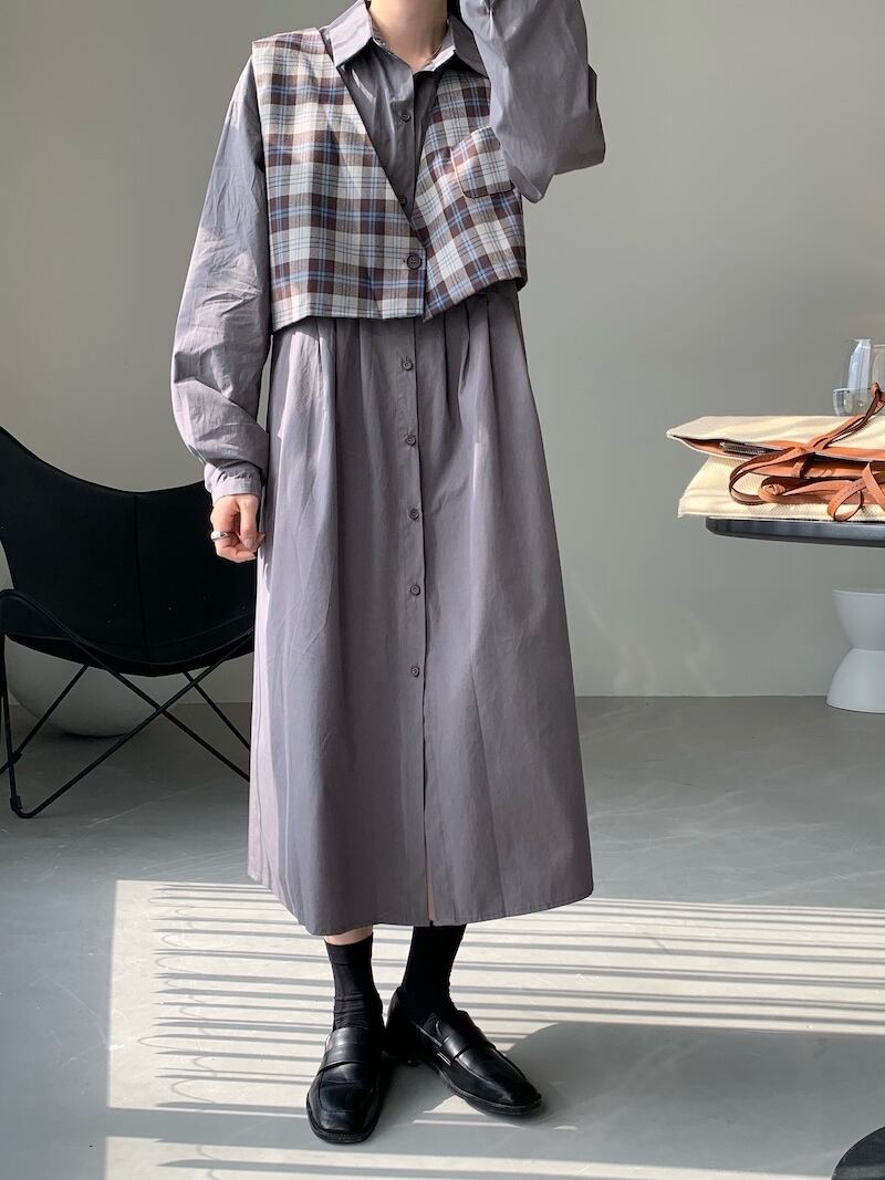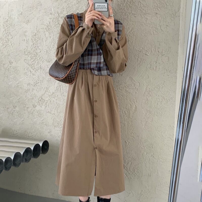 オータムスタンダード格子柄シャツ ロングドレス ルーズ薄手レディース レトロ 秋物 ICC_レディース13851325689