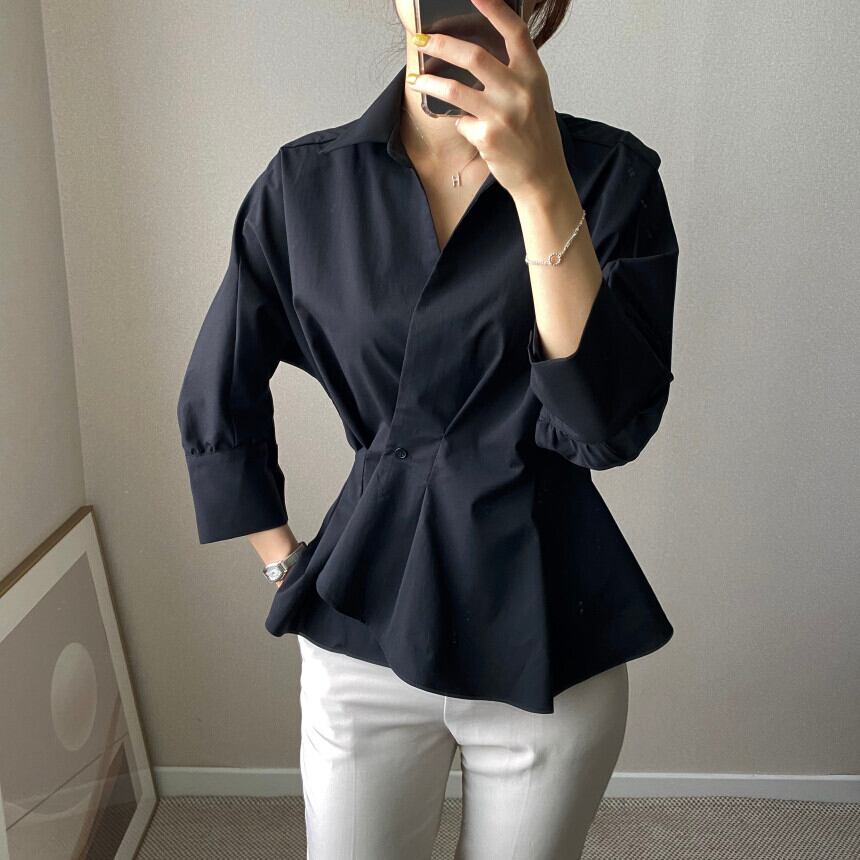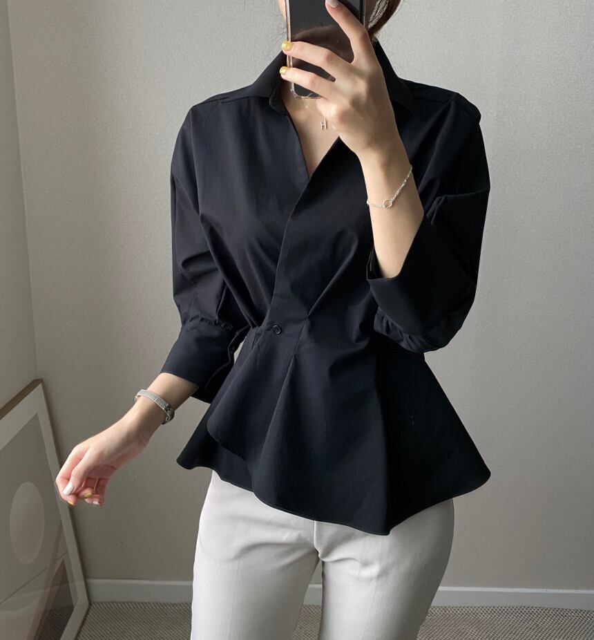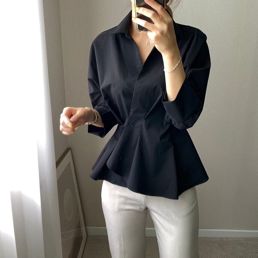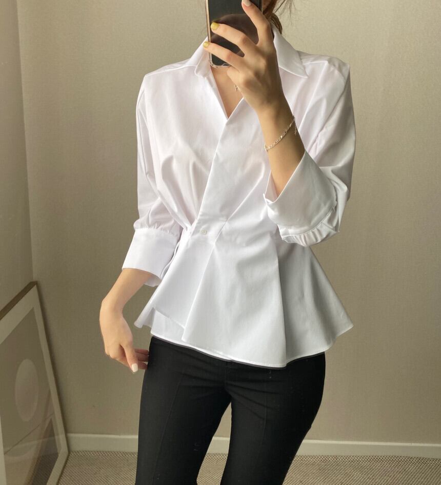 オータムスタイルホワイトシャツ ウェストトップス 大きめサイズ 秋物 ICC_レディース47699409343