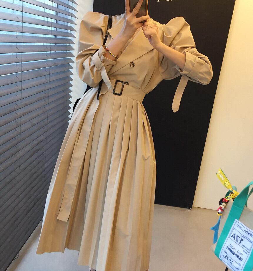 オータムスタンダードスタイルルーズカジュアルスリーブ薄手プリーツドレス レトロ 秋物 ICC_レディース79663932411