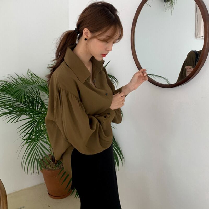 オータムスタイルスタンダードルーズスリーブシャツ ハイウェストウェストスカート ランタンスリーブ レトロ 秋物 ICC_レディース67714517087