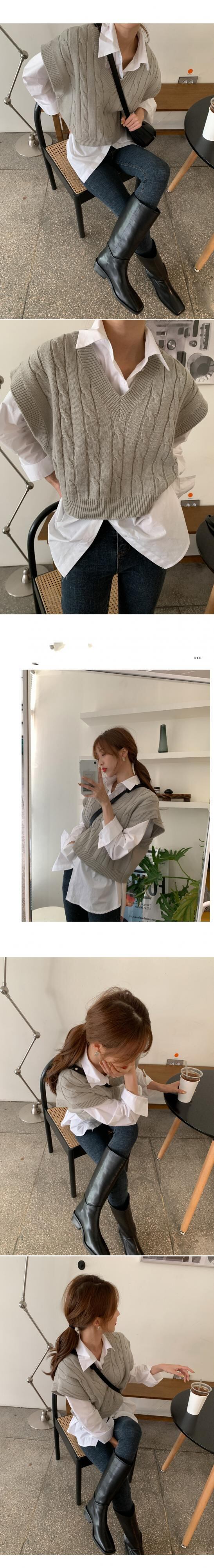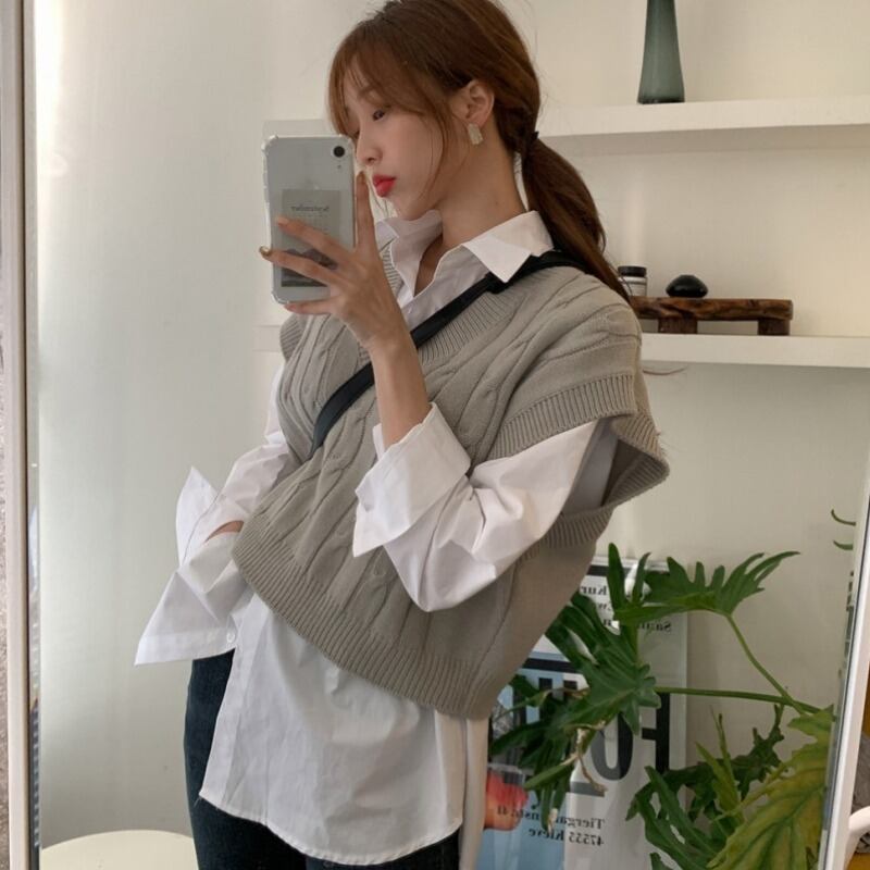 オータムウィンタースタンダードVネックニットレディースノースリーブセーター ホワイトシャツ レトロ 秋物 冬物 ICC_レディース61273344371
