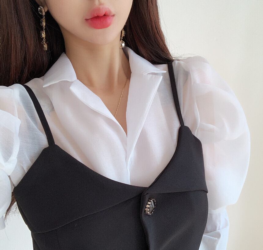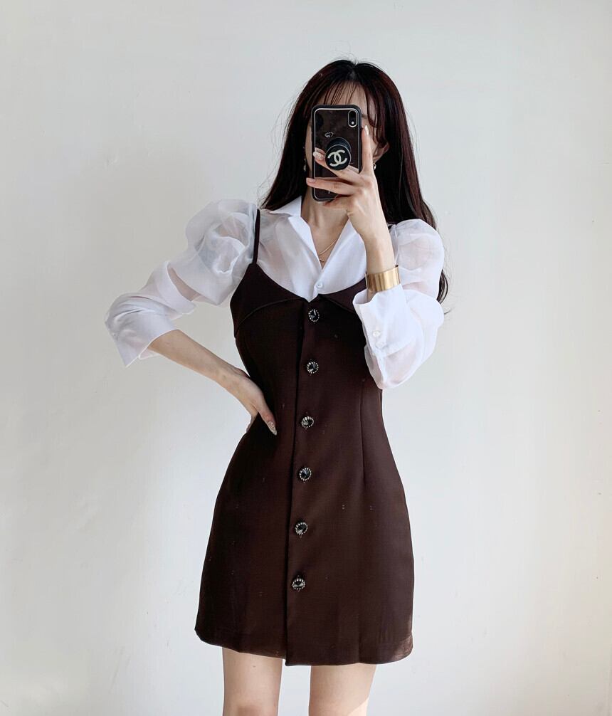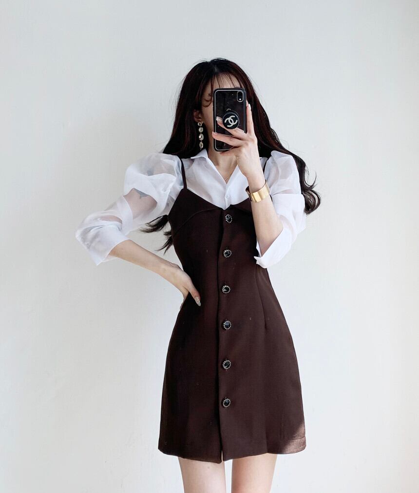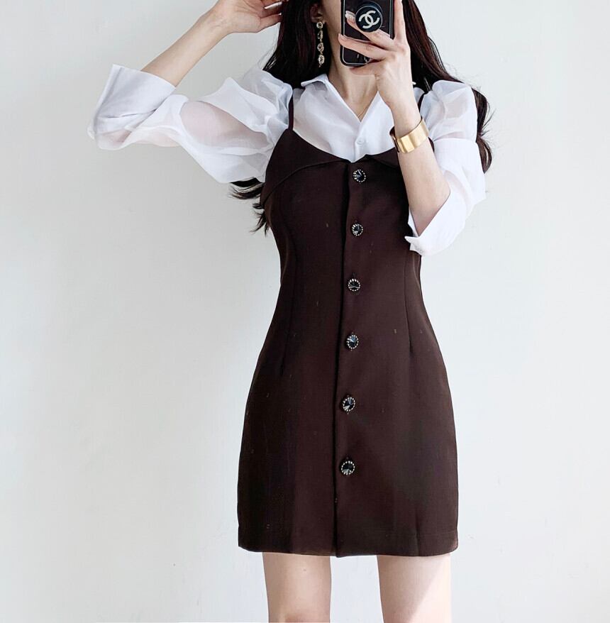 色:コーヒー色のスカート,黒スカート,白のシャツ