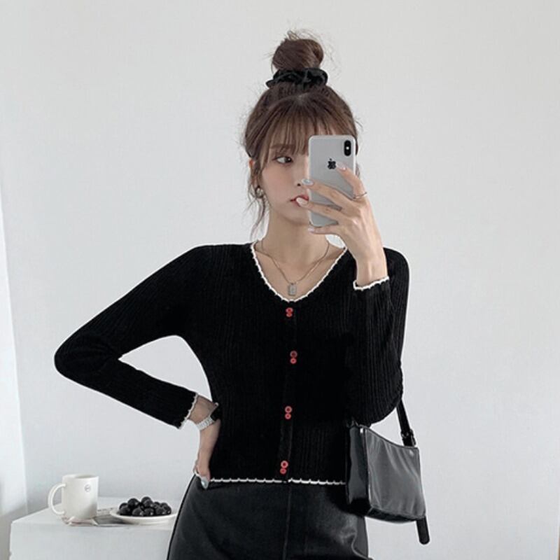 オータムショートニット薄手ロングクロップトップ トップス レディース ハイウェスト 長袖 秋物 シルク ICC_レディース91637302007