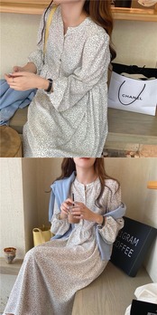オータムルーズフローラルシフォンスリーブドレス レディース 秋物 花柄 ICC_レディース84084195158