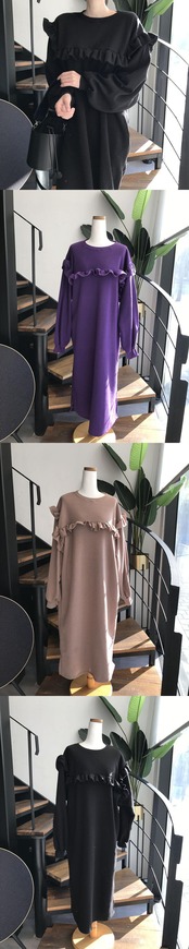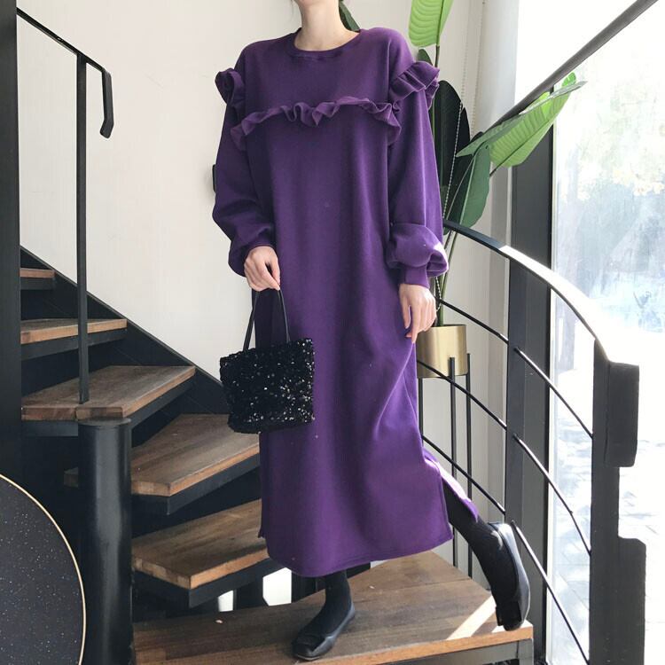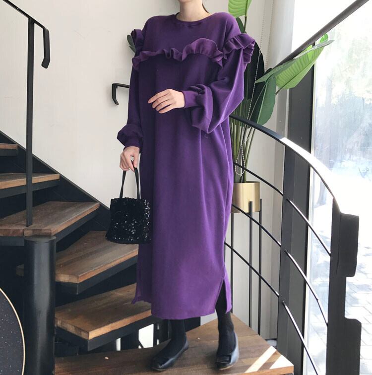 オータムカラーラウンドネックスリーブプルオーバー セーター ドレス ランタンスリーブ 秋物 Oネック ピュア ステッチ ICC_レディース5307534328